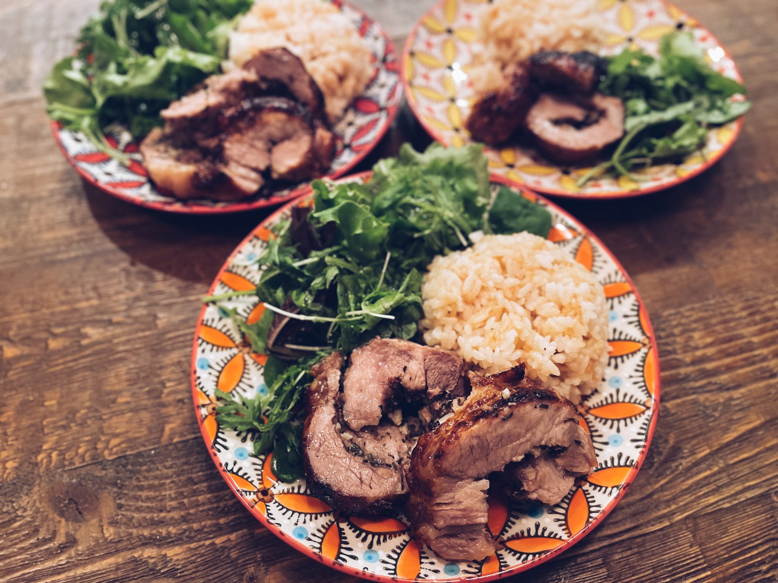 今日はポルケッタを作る、と決めていて、豚肩ロースの塊とローズマリーが欲しいのだがどちらもなかなかスーパーになかったりする。ダメ元で何件かハシゴして駅近くのマルエツで立派なローズマリーを発見。しかし塊肉はない。仕方ないので8月の結婚式記念日にもお世話になったお肉屋さんまで自転車を飛ばして無事ゲット。