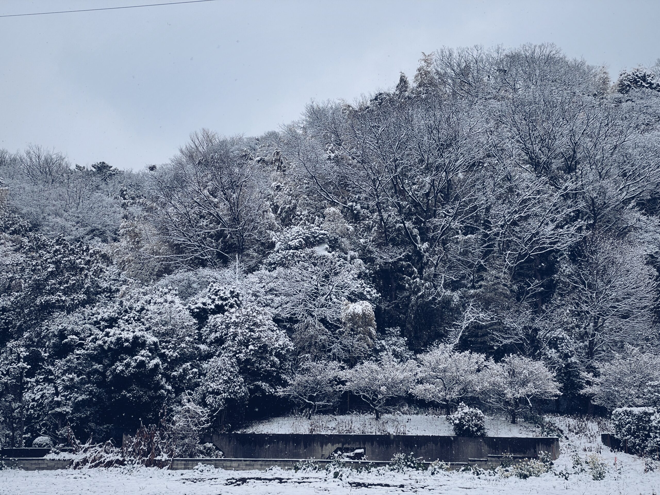 日曜、特に気にしてなかったが起きてきたボーイが窓の外を見に行って「ゆきー!」と喜んでいる。