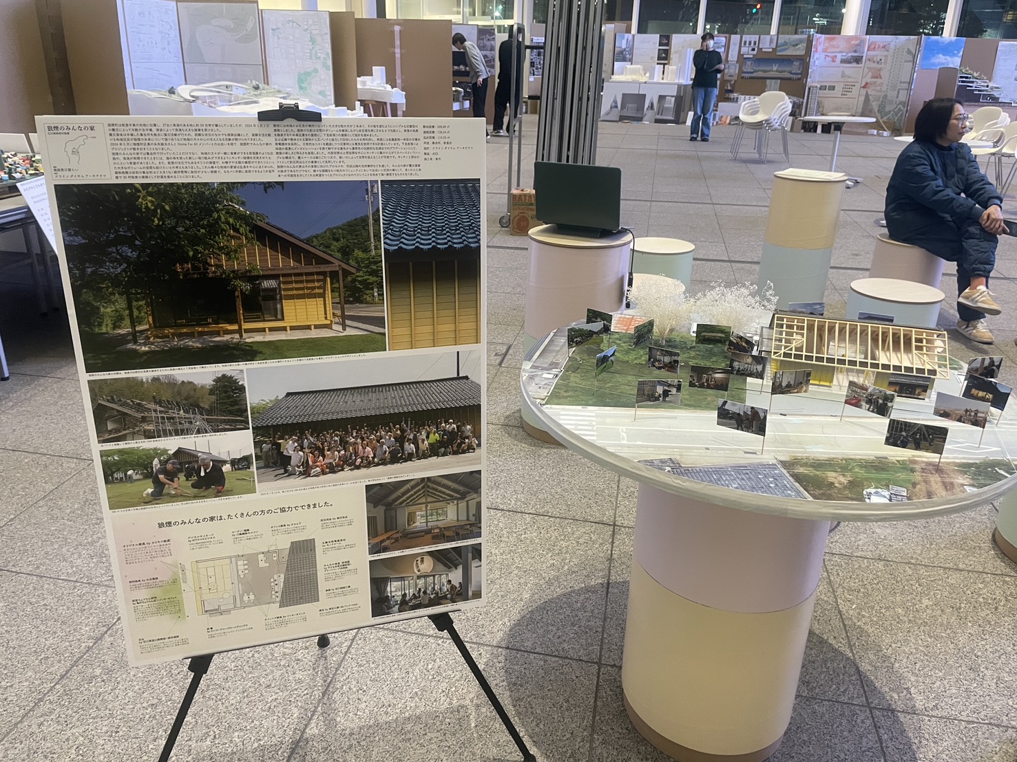いつもなら水曜は週に1度のお迎え担当外の日なのでステフレにでも寄るのだが仕方ない…と思いつつ駅に向かっていたら(あ、〆切は無事に納品した)、市役所のホールでJIA神奈川のかながわ建築祭2026の展示が始まっており、電車まで少し時間があったのでその中のみんなの家の展示を眺める。写真は我々が構造設計を担当した狼煙のみんなの家。