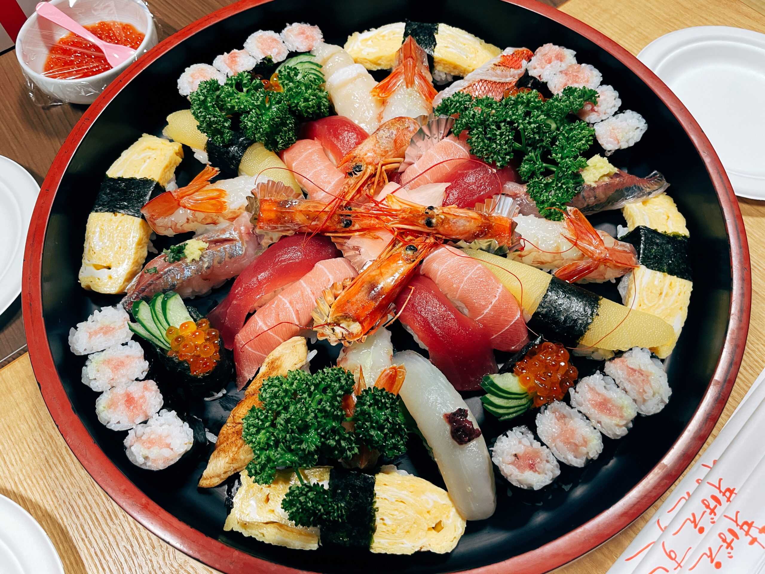 7歳から22歳までの子らに、47歳から87歳の大人がいるのでこういう時の料理はいつも幅広い。今回も寿司、ピザ、ケンタッキー、サンドイッチ、などなど。そして一番食べるのも飲むのも最高齢の義父である。