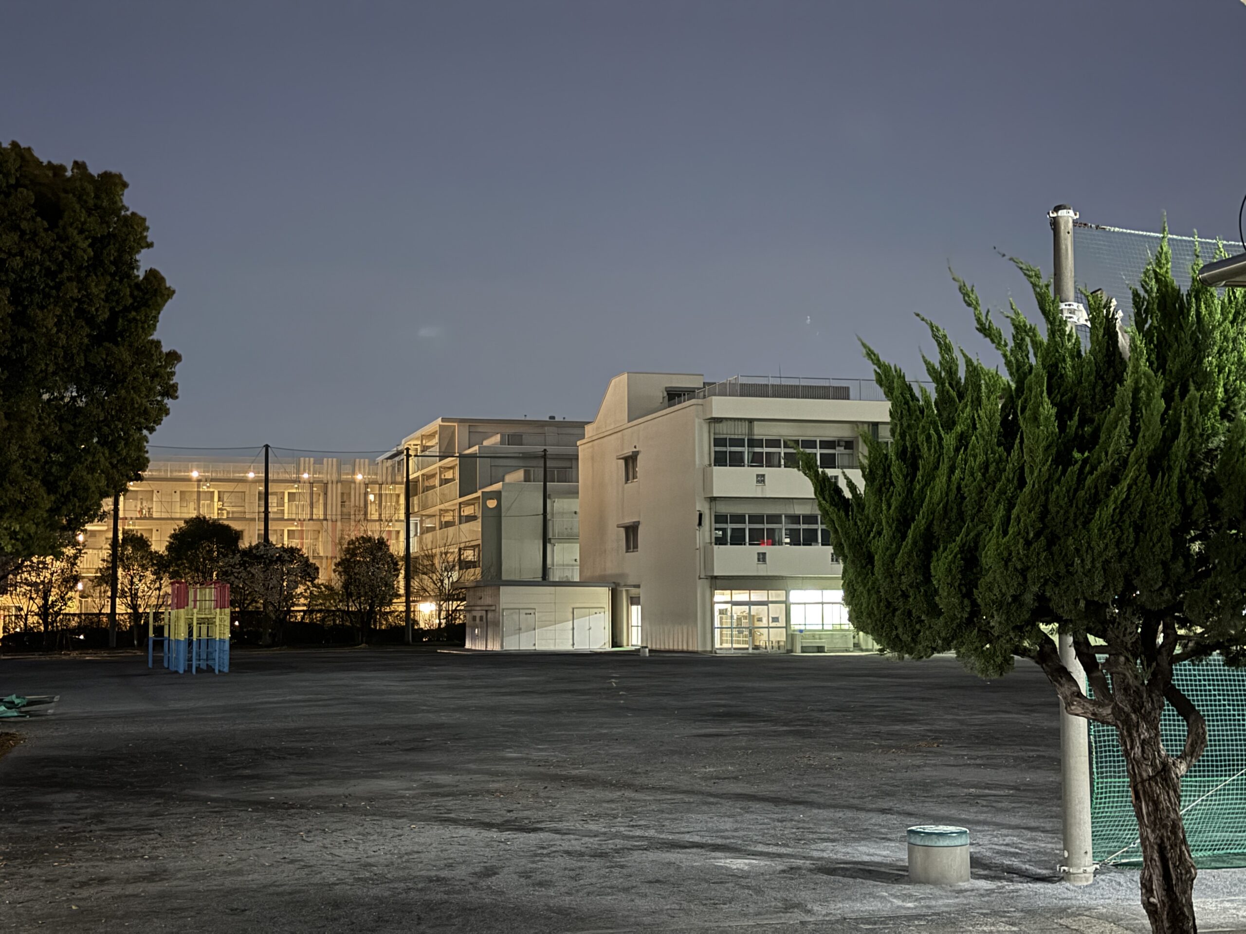 学童(小学校併設)にお迎えに行って、出てくるのを待っている間に校庭を撮ってみる。