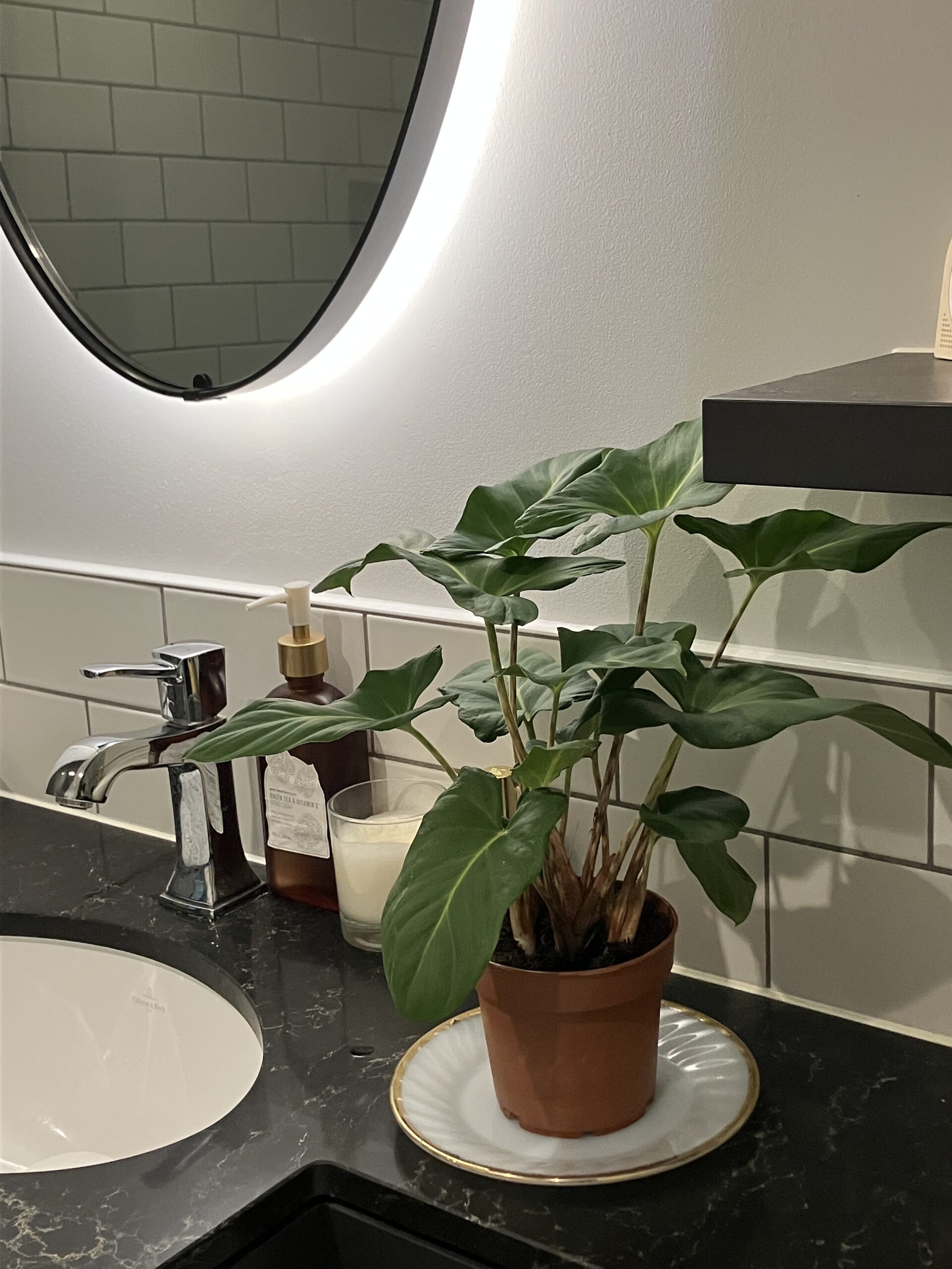 熱帯アメリカ原産だそうで、窓際のちょっと寒いところに一時的に置いただけで項垂れてしまった。慌ててバスルームに持って行ったら気に入ったらしく、以後は絶好調。