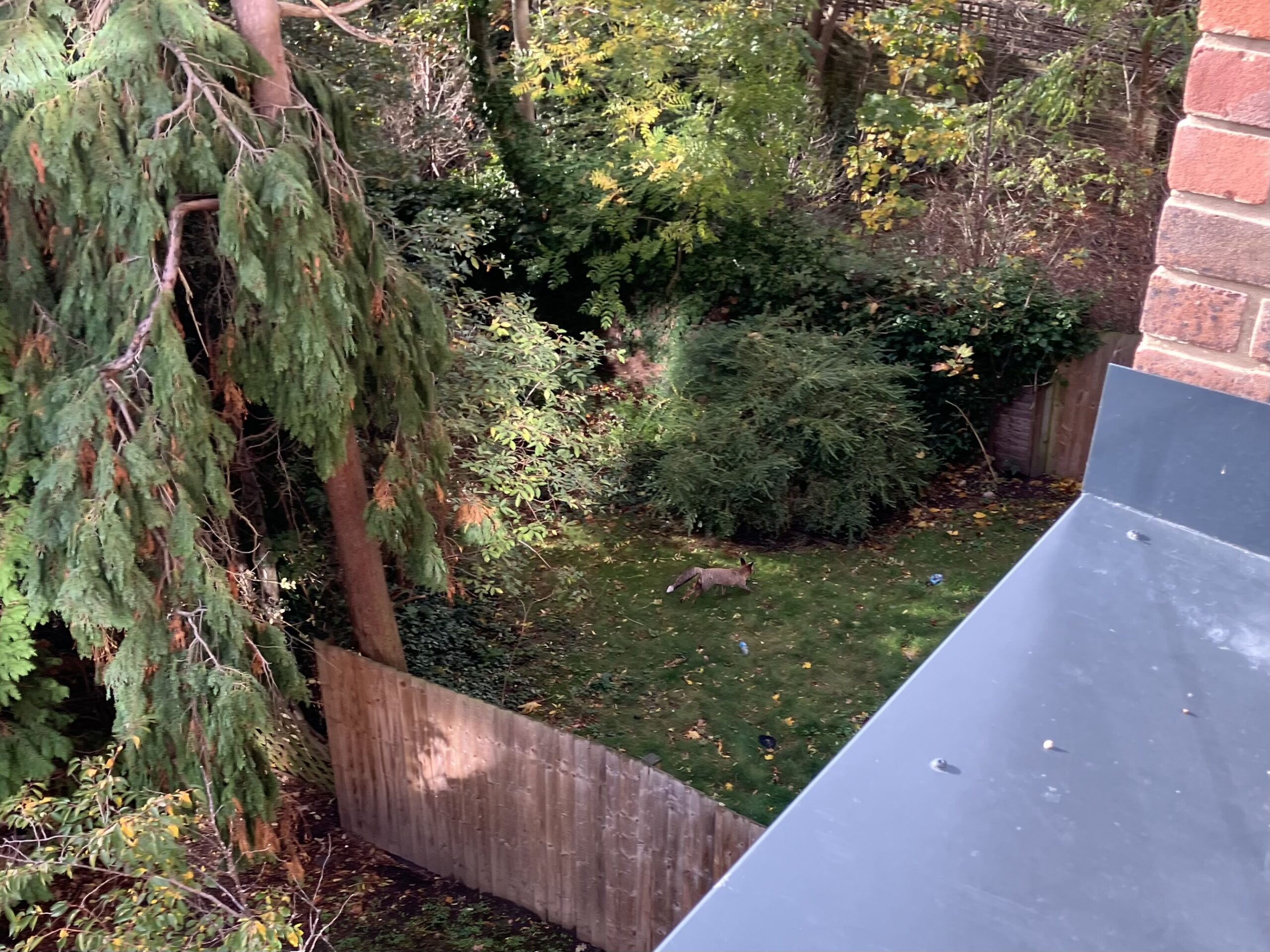 カメラを向けるとこちらの存在に気がついた様子。広いお庭には憧れるけど、窓を開けたらキツネとご対面なんて、ちょっとビビるわ。