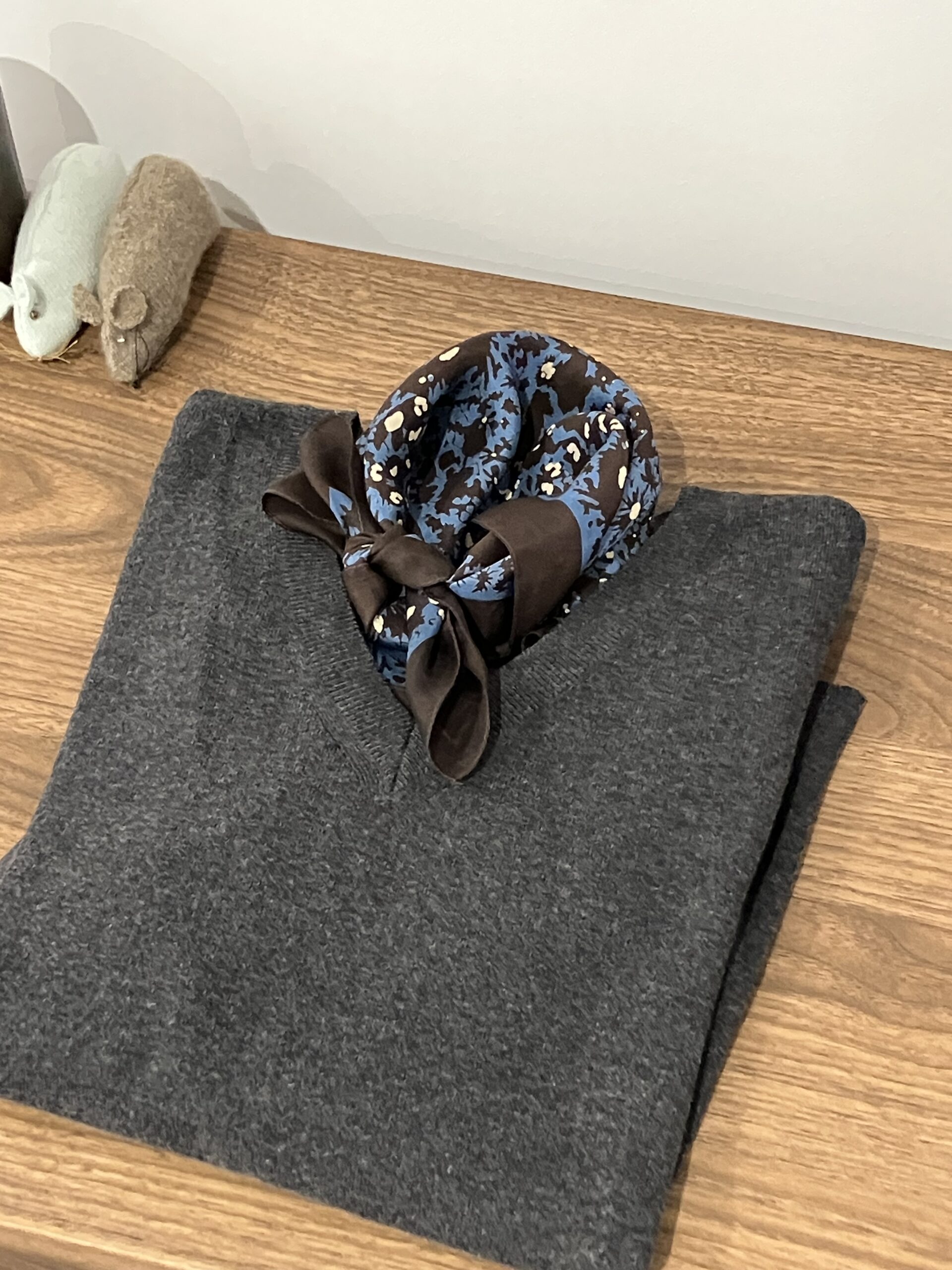 本日はまたまたオールドリバティのスカーフを購入。今回は少し小さめ。プレーンなニットを華やかにしてくれそう。