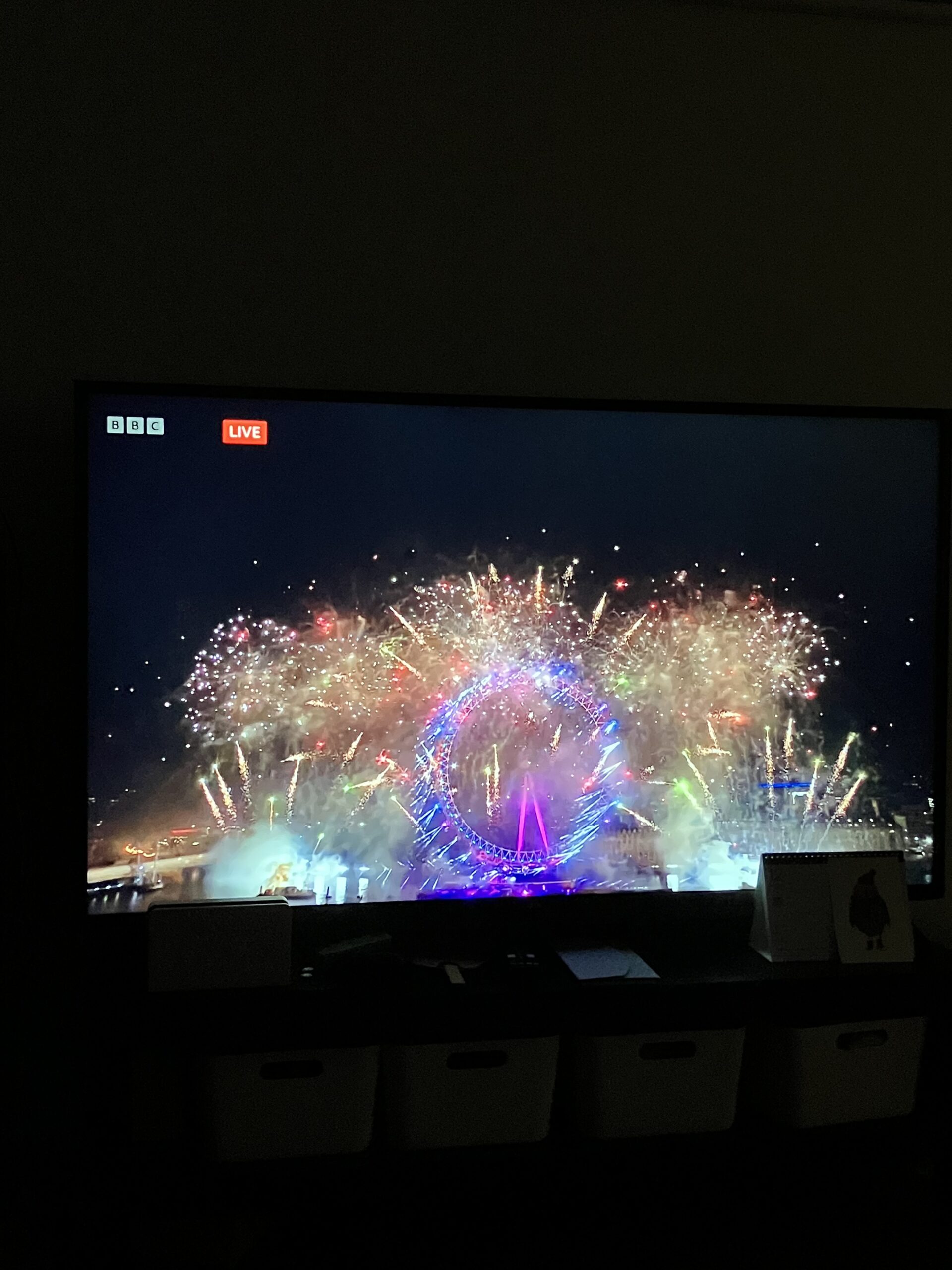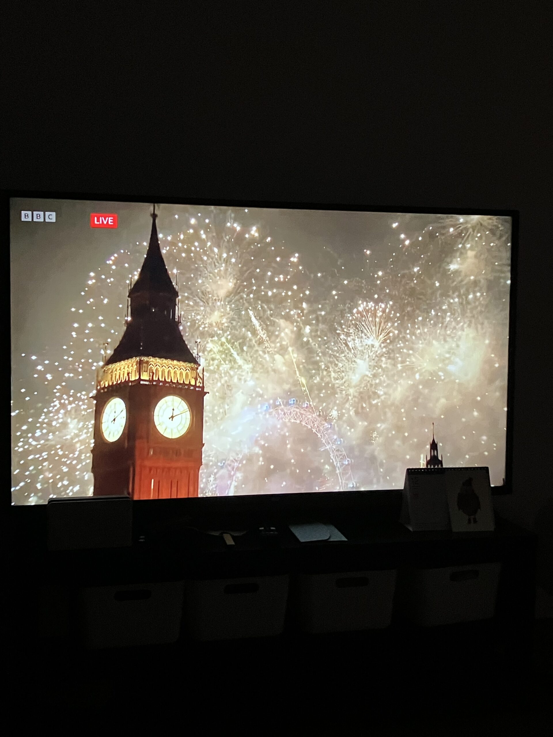 家でBBCを見ながらカウントダウン。12時前から家の周辺では花火が上がり始め、日本の厳かな雰囲気とは全く違う。