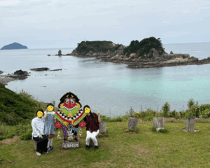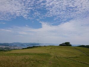 もしかしたら雲が多くなるかもしれないから、青空のある内に鬼岳に登って向こうに見える海や島と、街並みを見下ろしてもらおうと思った。
