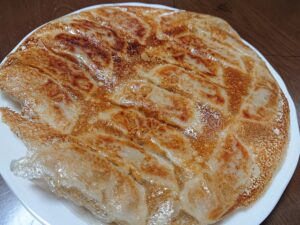 我が家の餃子は冷凍です。新しいフライパンで、きれいな焼き目が付きました。