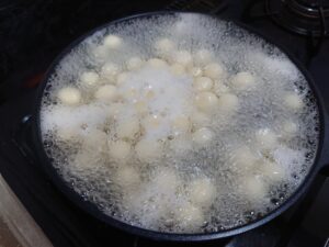 『白玉は水の代わりに同量の豆腐で作ると、時間が経っても固くならない』と、先生から娘へのお手紙で書いてあった、とやってみる。