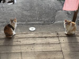 実家の子なわけではない、けれど当たり前のようにご飯を貰いに来る。これは、もう既に食べたあとで、残ったカリカリが足元に転がってた。