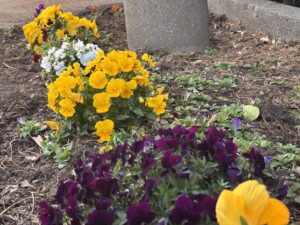 今朝は、おうちの入り口のところに植えてある花の間の草をとって、わが家のパンジーとビオラを直植えしてあげた。ひとつの鉢に窮屈に植えられて根も絡み合ってしまっていたけれど、開放感半端ない!って感じで花が喜んでいる気がする。間にある最初から直植えされてた苗はやっぱり大きい。
