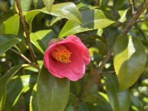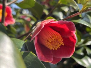 前回の散歩ではそんなにたくさんもなかった椿だったけれど、今日はどこもかしこも満開で、あちこちで花がボトッと落ちていた。