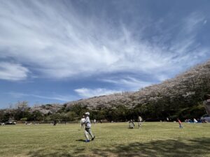 五島の箕岳は、空き地をグルっと桜の木が囲んでいて、上からの眺めが最高。
