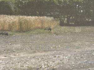 カラスがしょっちゅうやって来て、引っこ抜いては実をついばむ。足でおさえて、くちばしを上手に使い、頭をあげて飲み込んで。