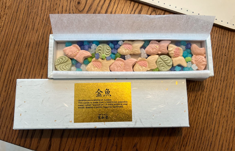 以前に頂いた和三盆の金魚がとっても美しい。