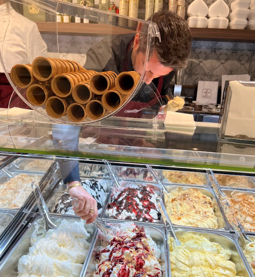 スモーキーなお兄さんでした。ジェラート屋さんって、若いお姉ちゃんか小慣れたおばちゃんが働いていることが多いのだけど、こんなザ・伊達男がサーブしてくれてそれだけで満足。