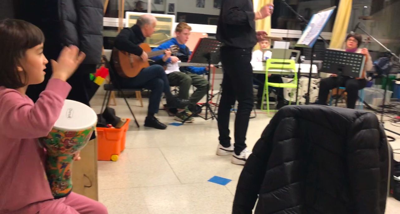 観ていっていいよ、と言われたのではじっこで観ていたら、先生がソフィに太鼓を渡してくれた。リズムになんとか合わせながら叩いてバンドに参加しているソフィがとっても楽しそうで嬉しかった。