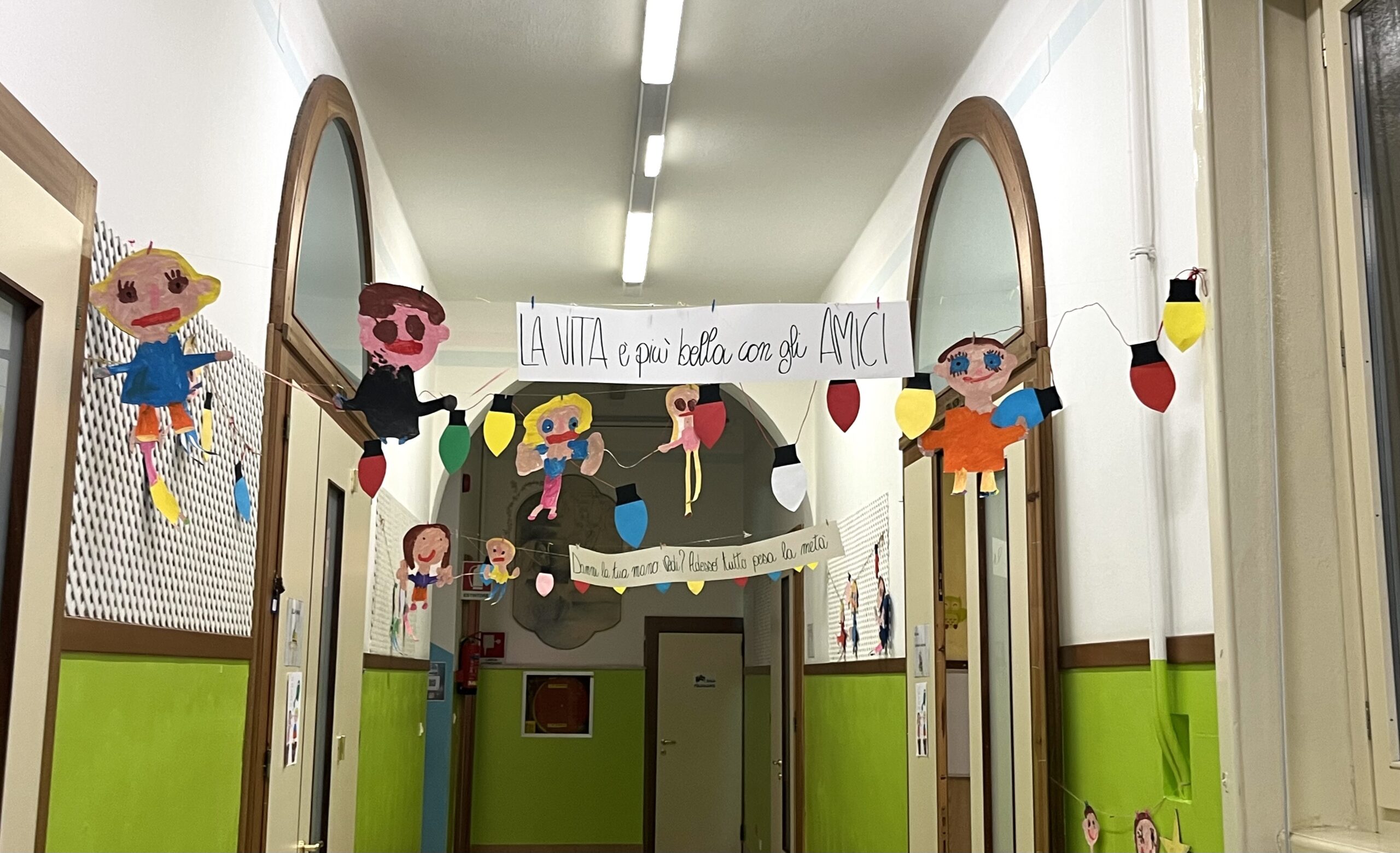 ソフィの学校の一階通路の飾りがかわいい。この階は幼稚園児の教室になっているから、きっと小さい子たちが描いたのかな。人種が混ざっているので、青い目の子や金髪の子、茶色の子もいる。ソフィも小さい頃は茶色で描いてたのを思い出す。こうして違いがあるのが当たり前って育つからか、ソフィはミックスだし、クラスで一番小さくても何とも思わないみたい。わたしが気にしてるだけっていう。自分の中の偏ってる部分に気づかせてもらえる。