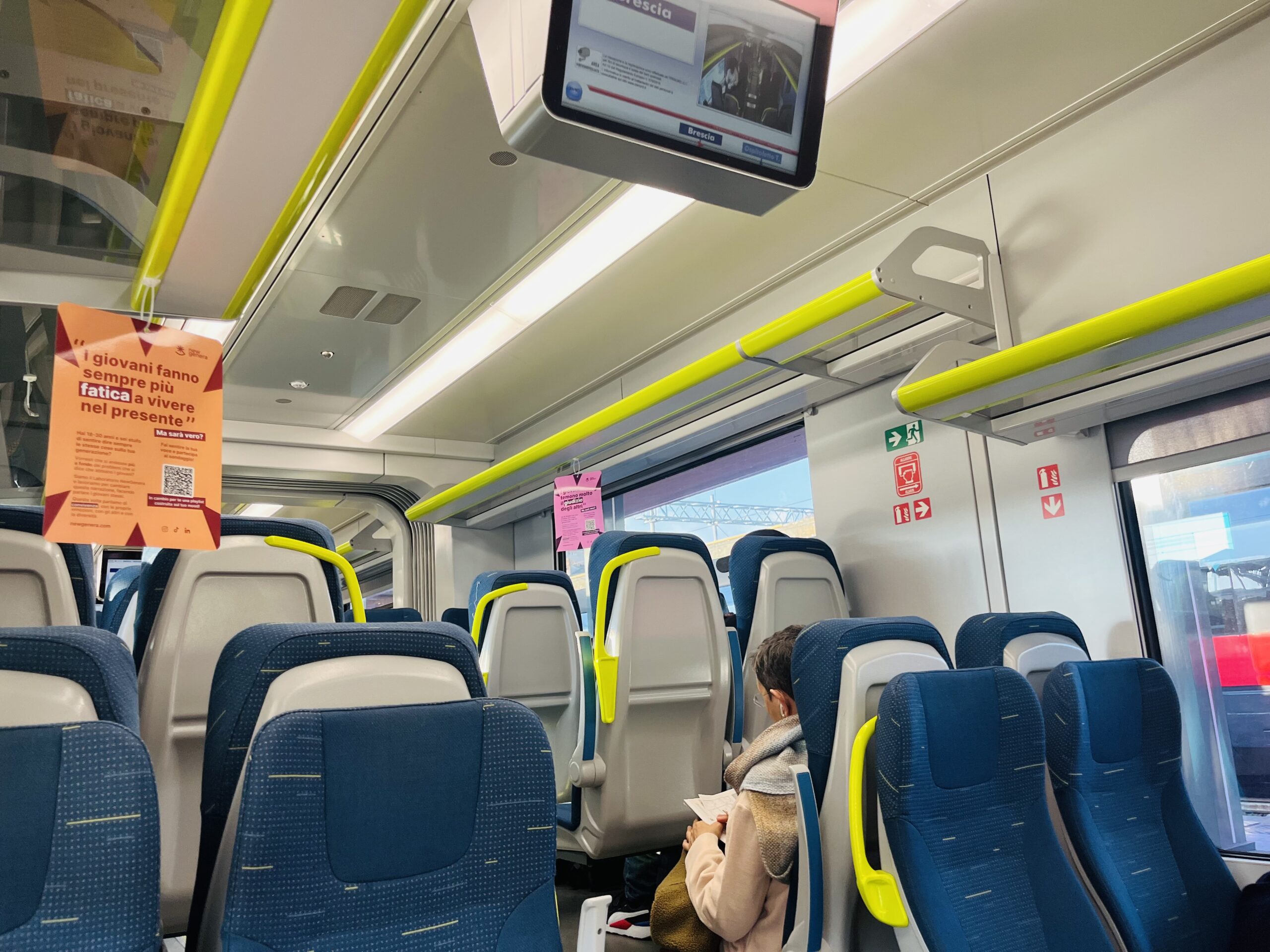 帰りのフレッチャロッサはガラガラで、リラックスして乗っていたら、次の停車駅で真横にお兄ちゃんが乗ってきた。まわりは誰もいないのだけど、なんだこの配席は?