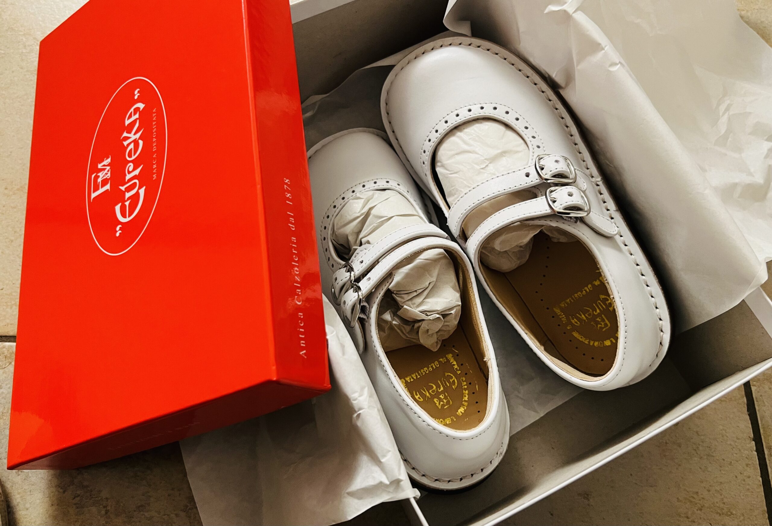 靴屋さんではたまたま在庫一掃中だったようで、箱がたくさん積んであるなかに私が履けそうなデザインの靴とサイズもあったので試してみた。イタリアのこども靴はサイズが36くらいまであったりする。わたしのサイズが35なので何か気にいるものを見つけたらラッキー。逆に大人のサイズは36〜あたりになるので、だいたいは大きすぎて履けない。