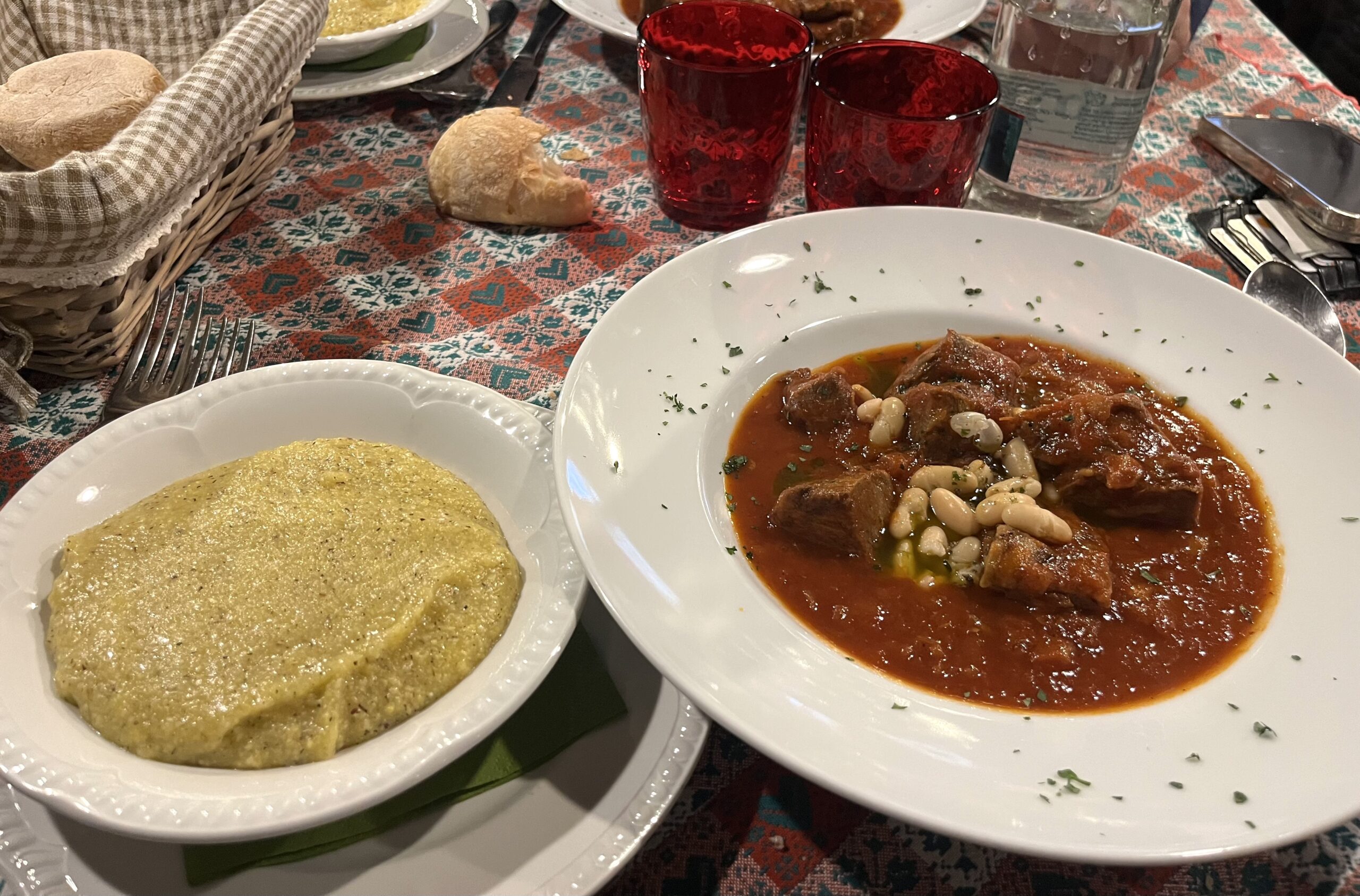 牛肉のトマト煮込みがとっても美味しかったが、24€だけあってボリュームが2人前くらいだった。プリモのパスタを頼まなくてよかった。一緒に来たポレンタは、わたしはあんまり好きじゃないけど、これはシチューと相まって美味しかった。
