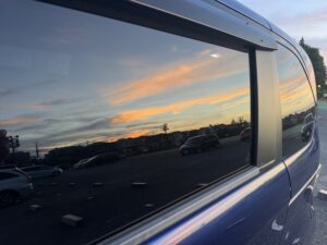 我が家のバタバタを、チアの送り時に車に移った綺麗な空を添えて記しておく。