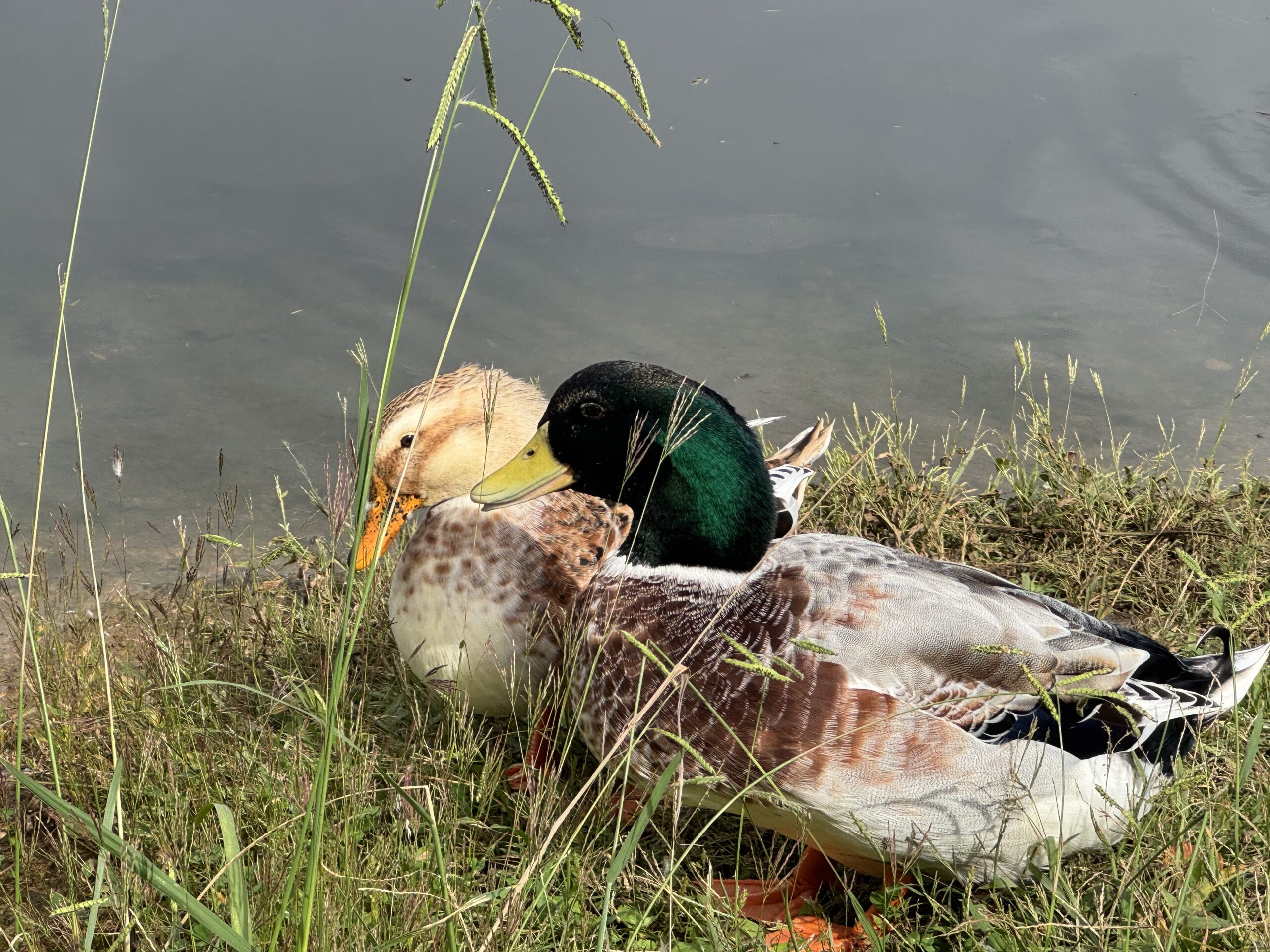 こんな至近距離で写真撮れた。マガモのご夫婦で合ってるのかな?