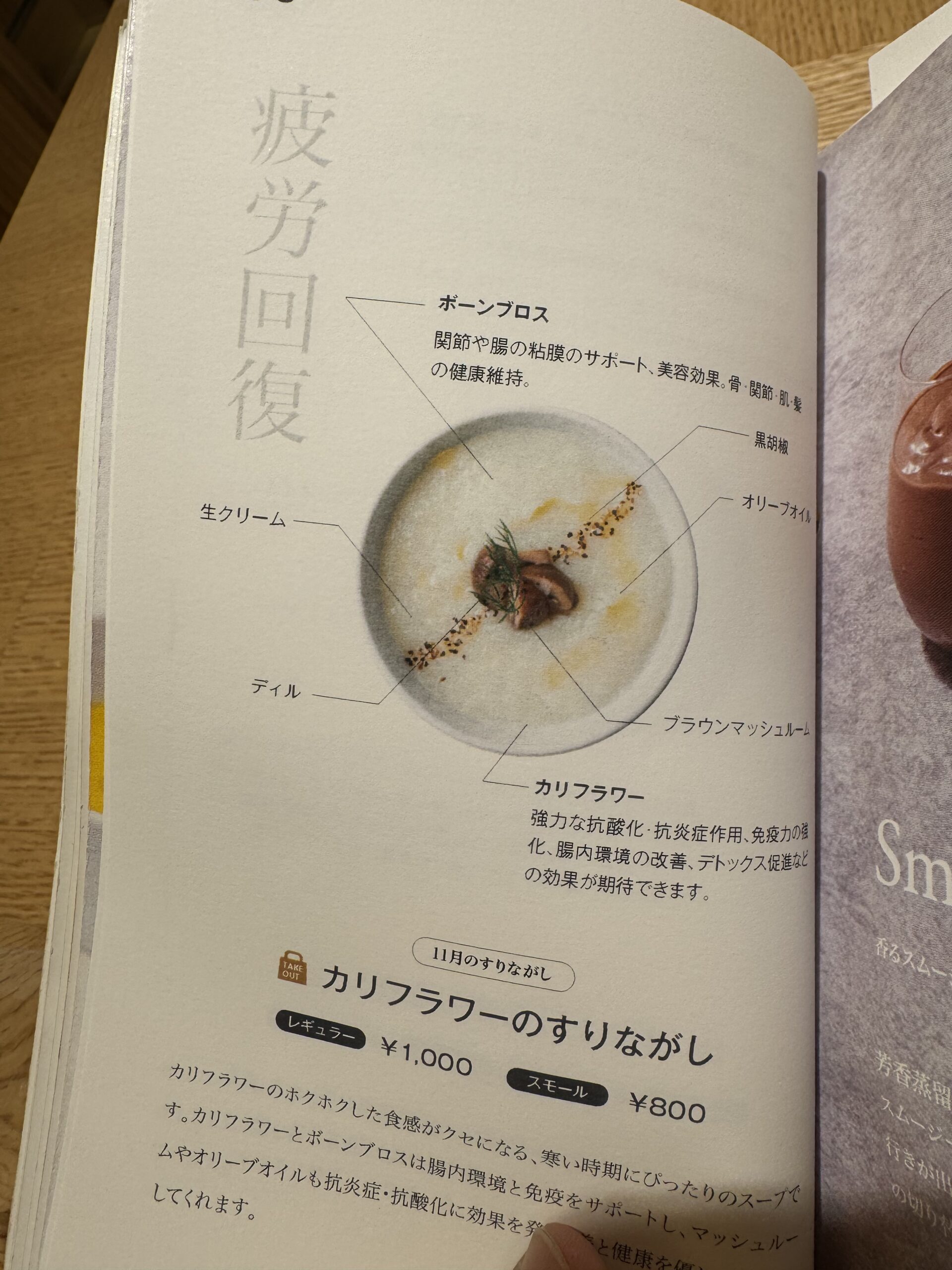 今日は、カリフラワーのすり流しにしてみた。おいしー。疲労回復となっていたので、体も喜んでいることでしょう。