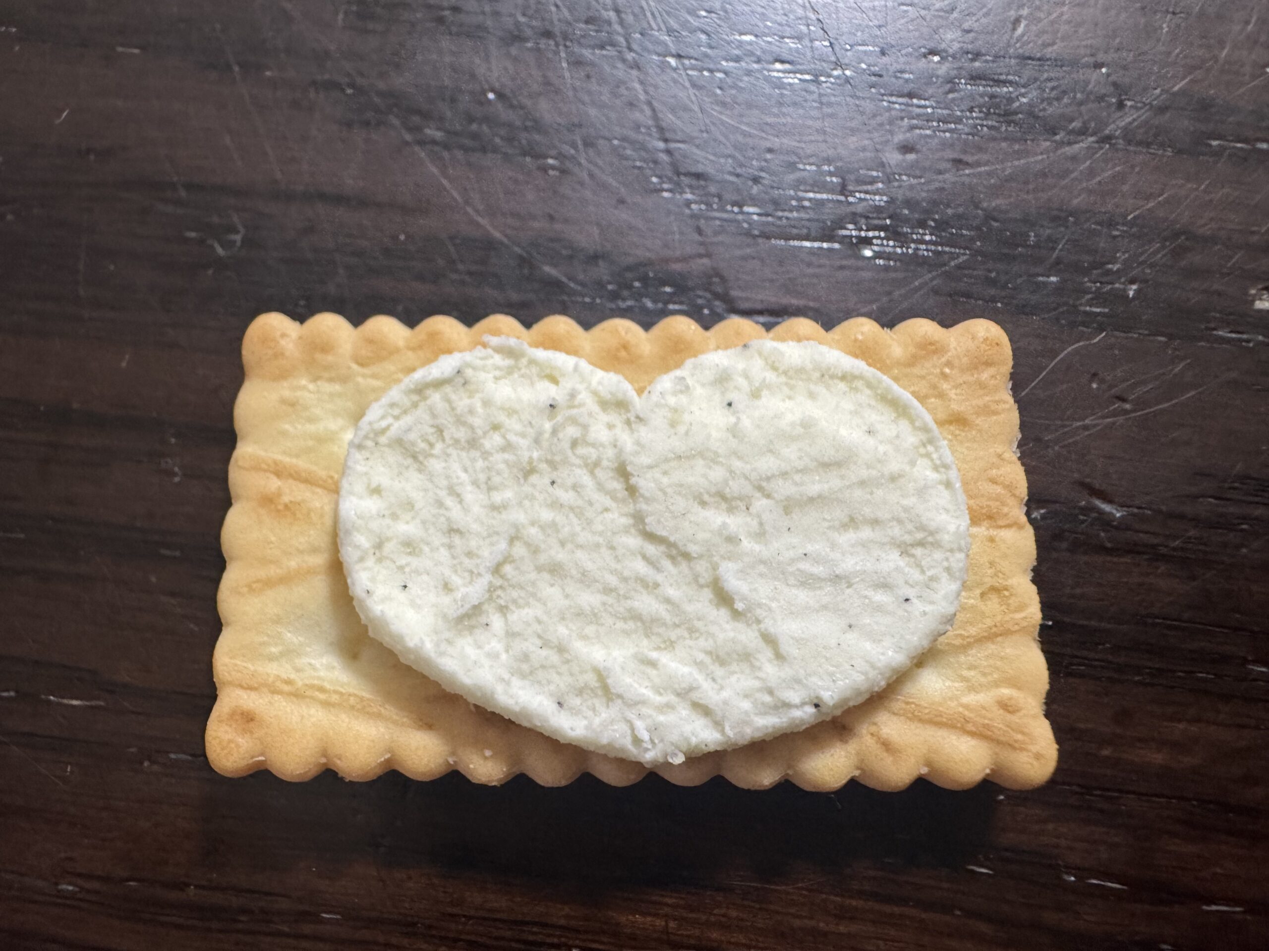 おやつタイムに次女がビスコを割ったら、クリームがハート!って見せてくれた。こういう小さな幸せっていいよねぇ。