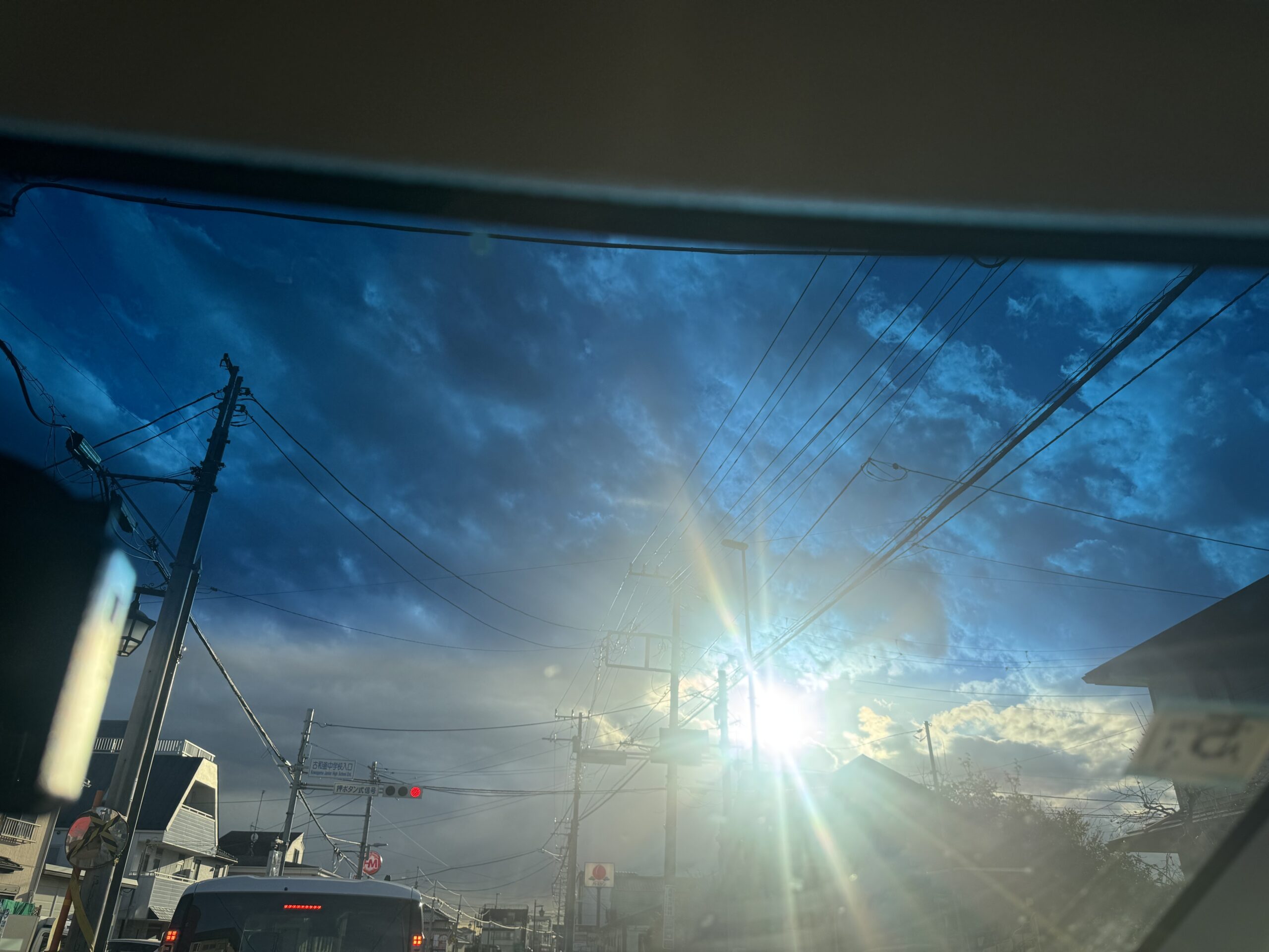 今日はすごい寒くて、雪が降るんじゃないかと思うぐらいの厚い暗い曇り空の合間に出てきた太陽。