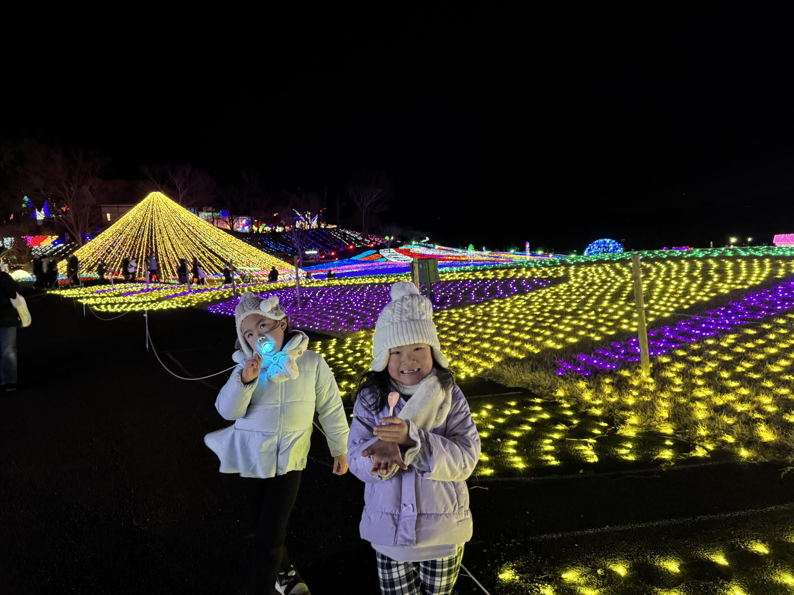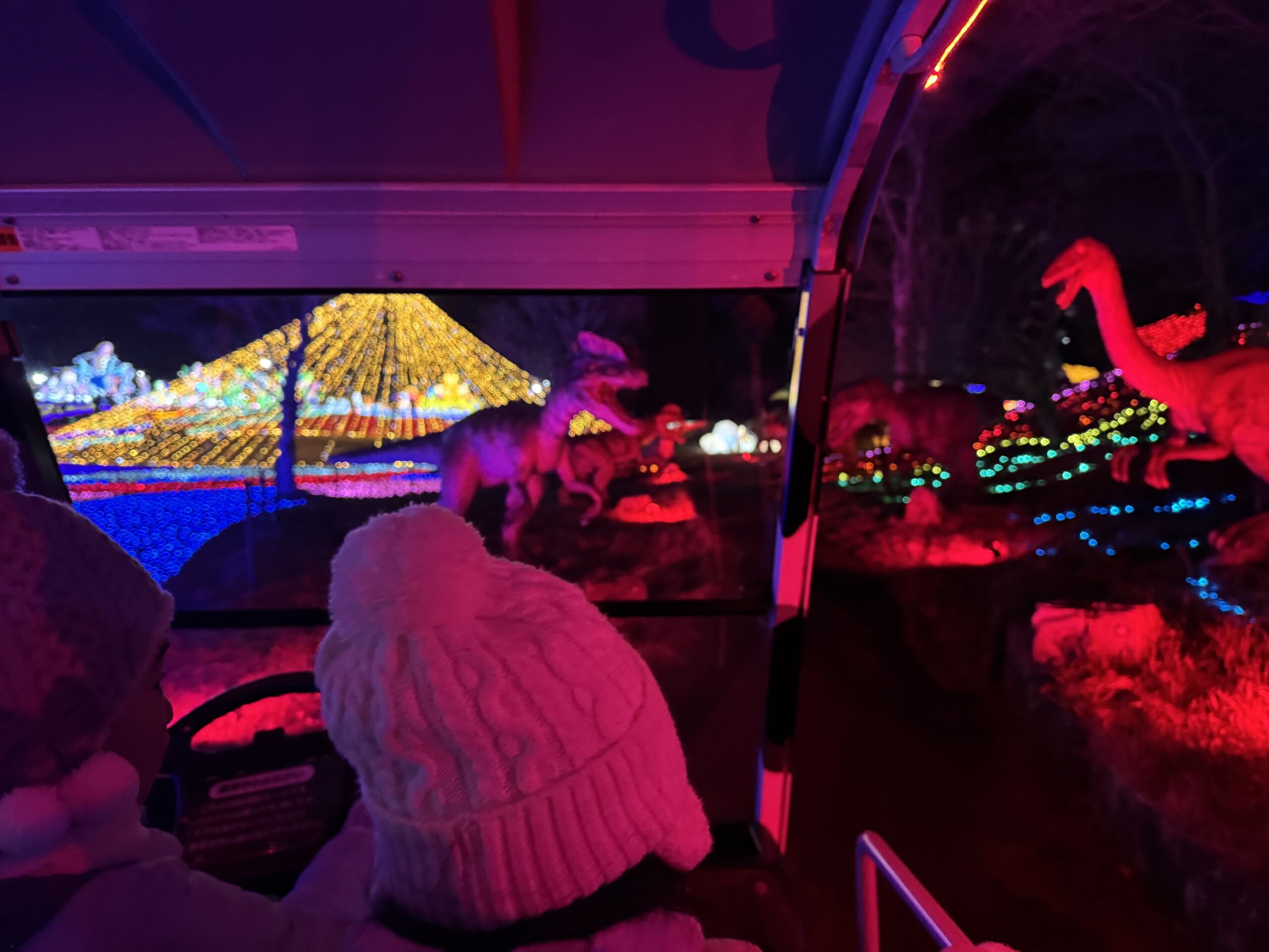 やっぱりイルミネーションいいなぁ。写真では伝えきれないほどすごいです。そしてイルミネーションの中動くライド物、恐竜がテーマみたいで次女は泣いてた。でも後で聞いたら一番楽しかったのはこのライドだそうだ。ドキドキハラハラと共に楽しい体験は心に残るのでしょうね。これも吊り橋効果なのかな。