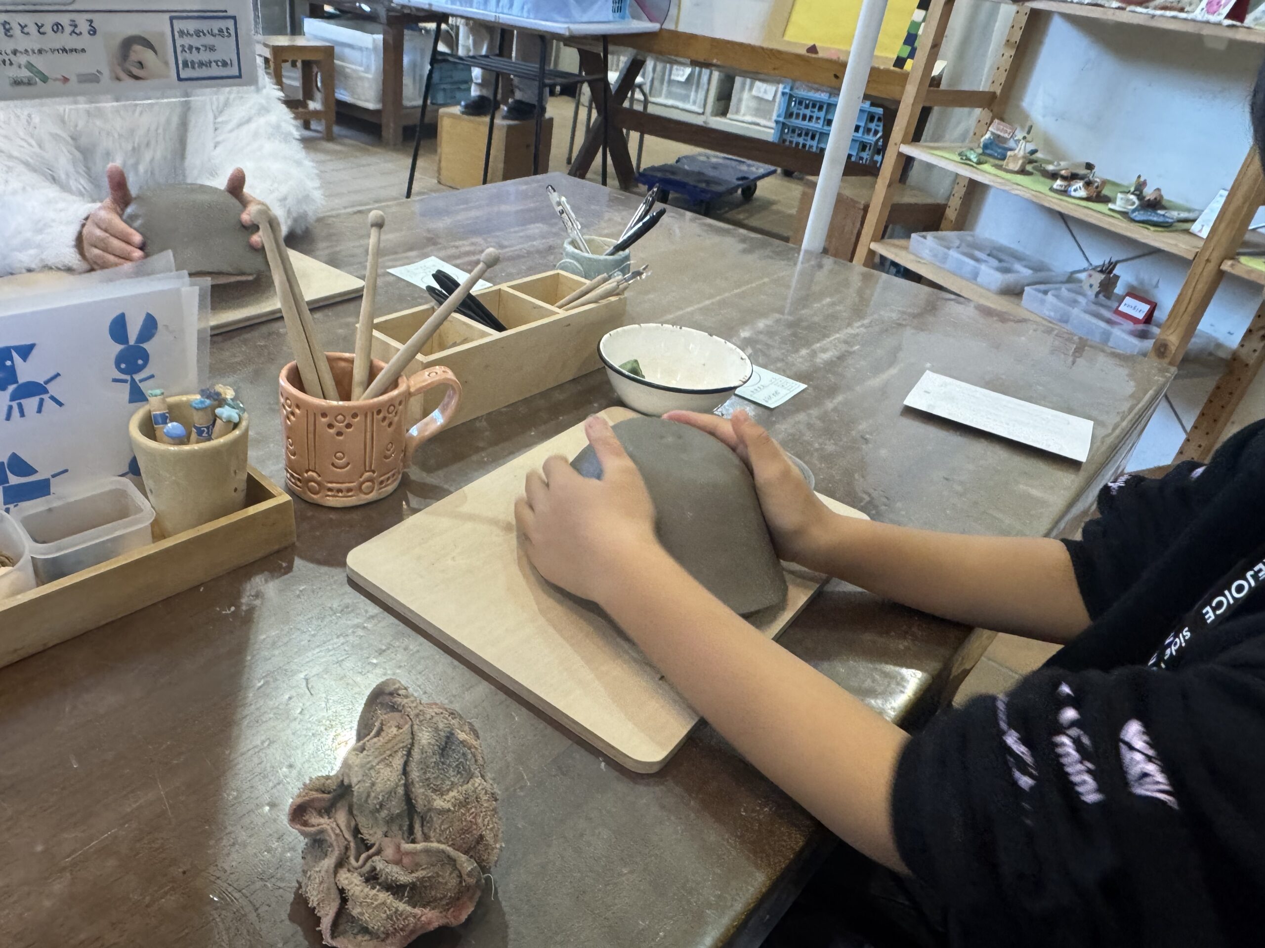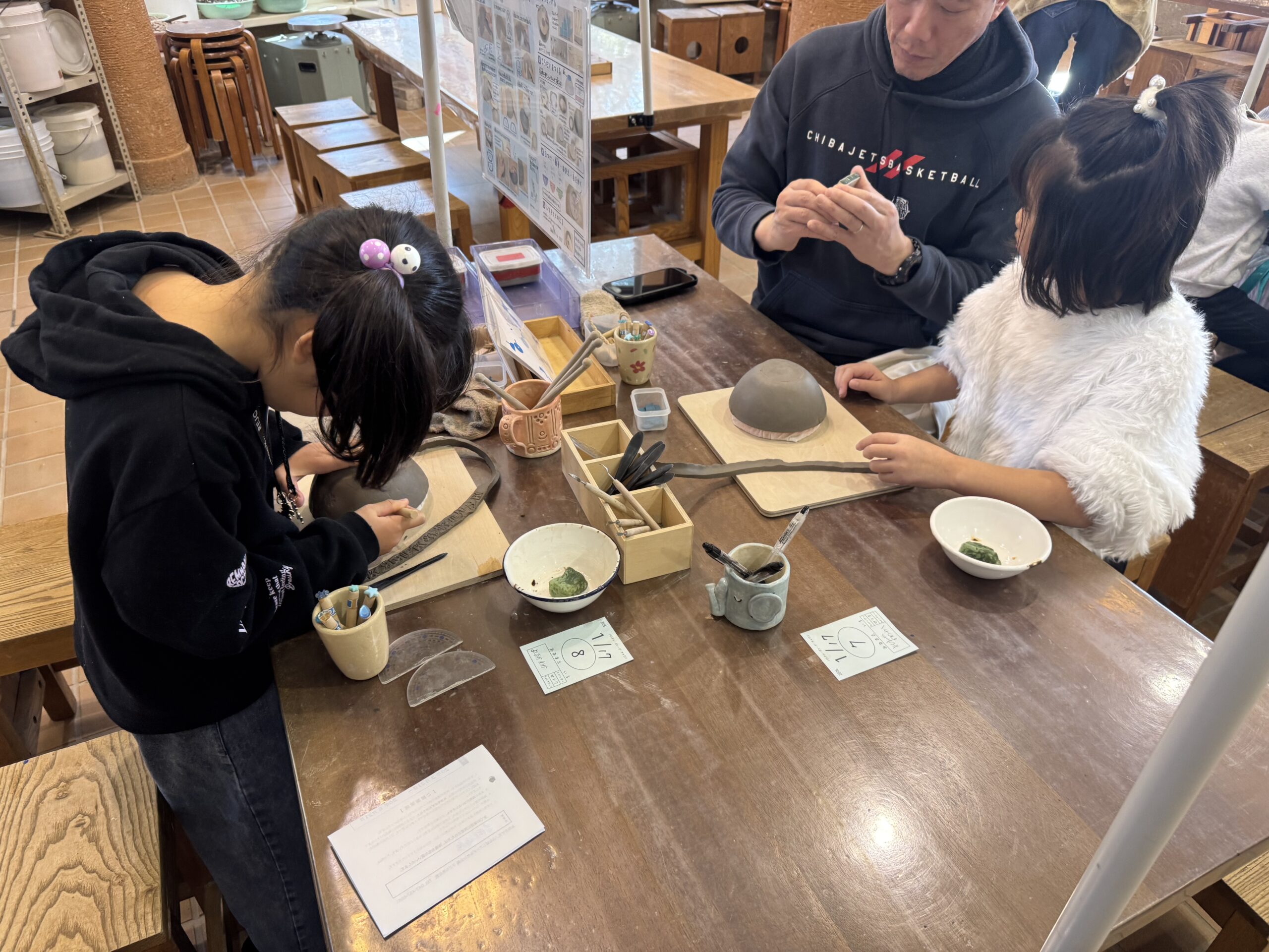 またまたお馴染みのアンデルセン公園。今日は一月のお誕生日だった義理姉1へ娘たちからのプレゼント作り。陶芸のアトリエで、粘土で作るお椀づくりをしてみた。