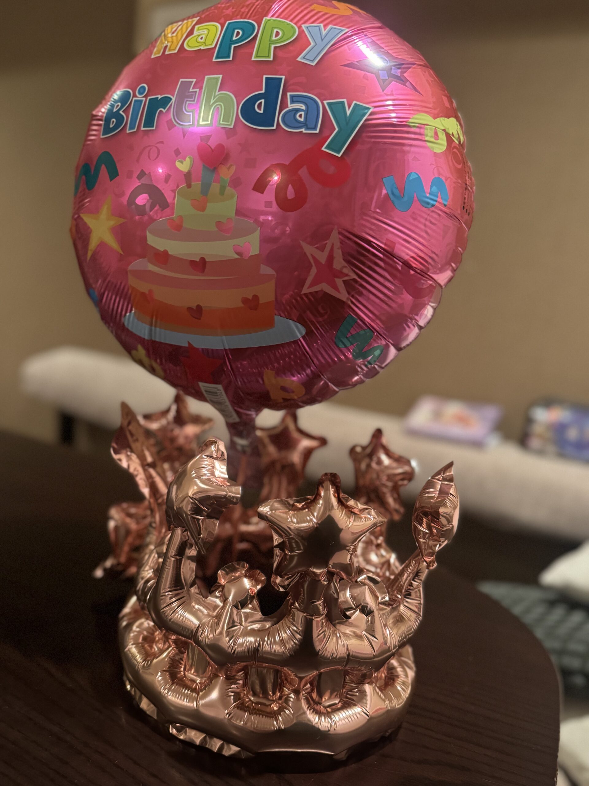 そして、百均で買っておいたバルーンでできた王冠と、ケーキ屋さんで見つけたハッピーバースデイの風船。蝋燭吹き消したら用無しなんだろうなと思っていたが、家でSwitchのマリオカートしている時も、義理姉を車で家まで送り届ける時もずーっと身につけていた。(王冠にバルーンをくくりつけてて、王冠からバルーンが上がっている状態笑)本当にずっと楽しみにしていたんだなというのと、今日という日を楽しんでいるんだなと感じられて愛しかった。親バカですが次女の感性の可愛いことよ。日記に残せて本望です。