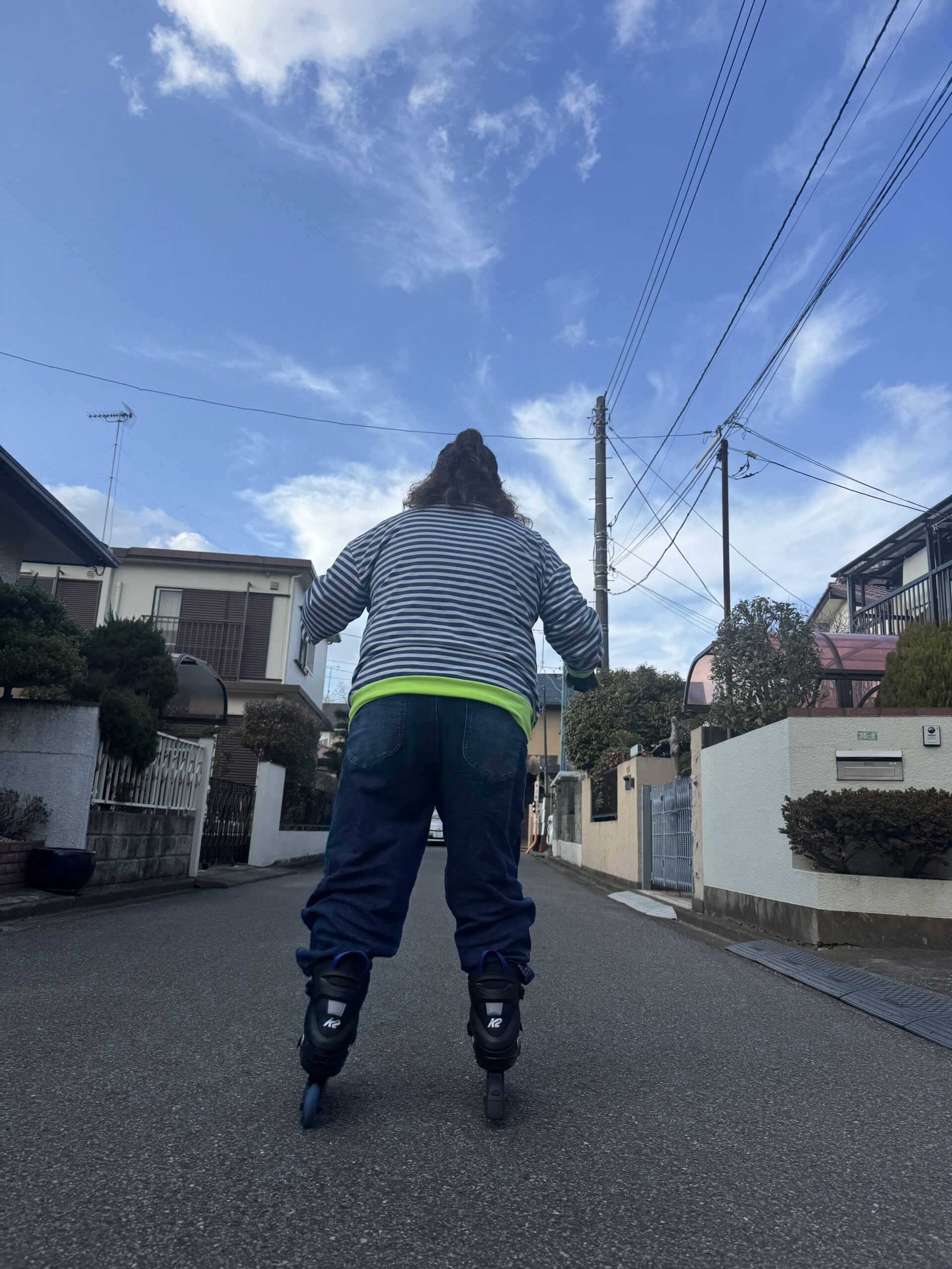 そして私もやってみたくなって、夫のを借りる。が、思ったように全然滑れない笑。そうだった。スキーもスノボもスケーティングが大の苦手なのだ。でかい背中とお尻が恥ずかしいが写真載せちゃう笑。