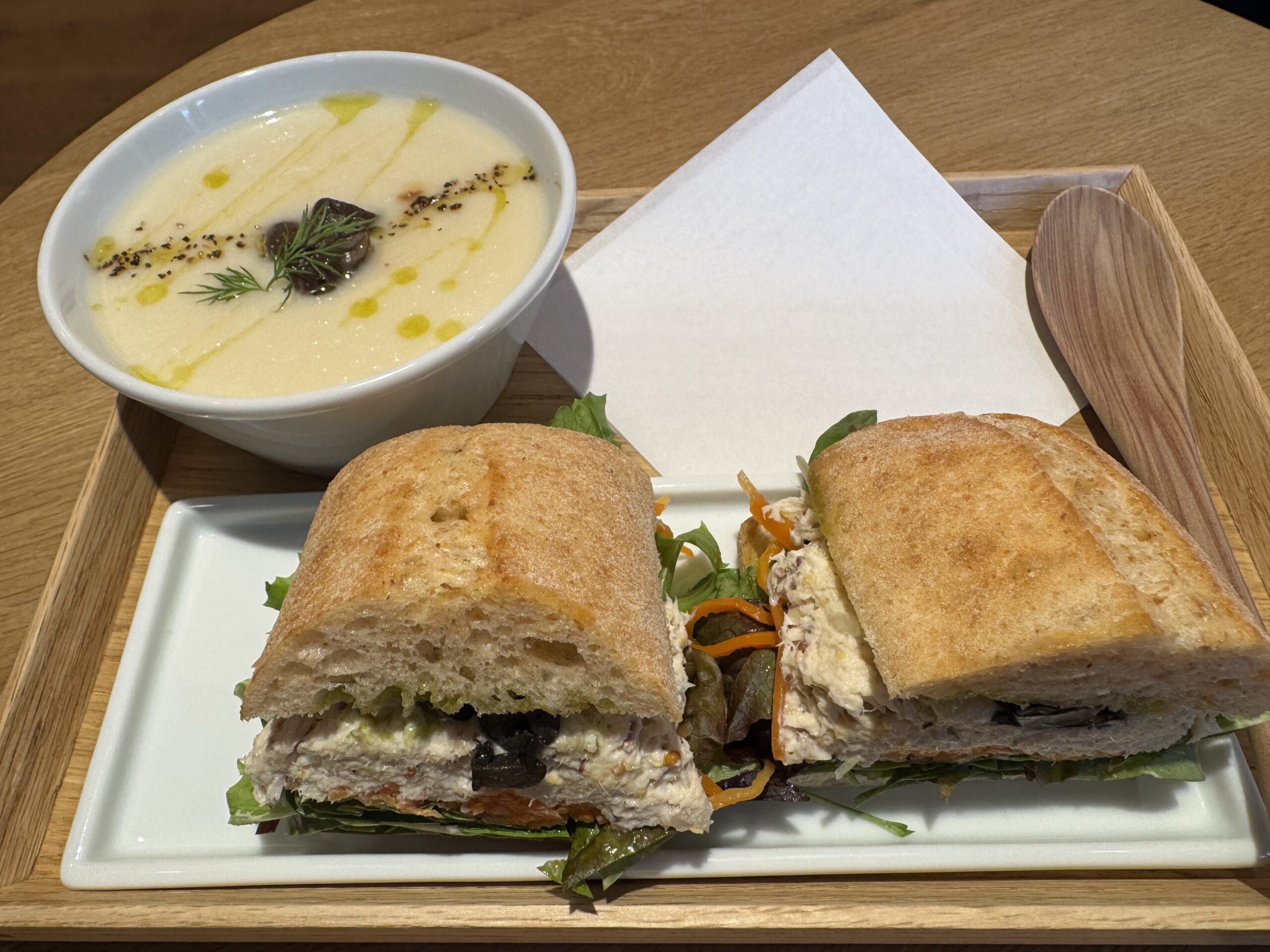 今日はカリフラワーのすりながしとサンドイッチにしてみた。心が落ち着く味。お店の中で、小物等が売っていて、初めてゆっくり見てみた。そこにあった、品物とPOPに目がいって、写真をパチリ。