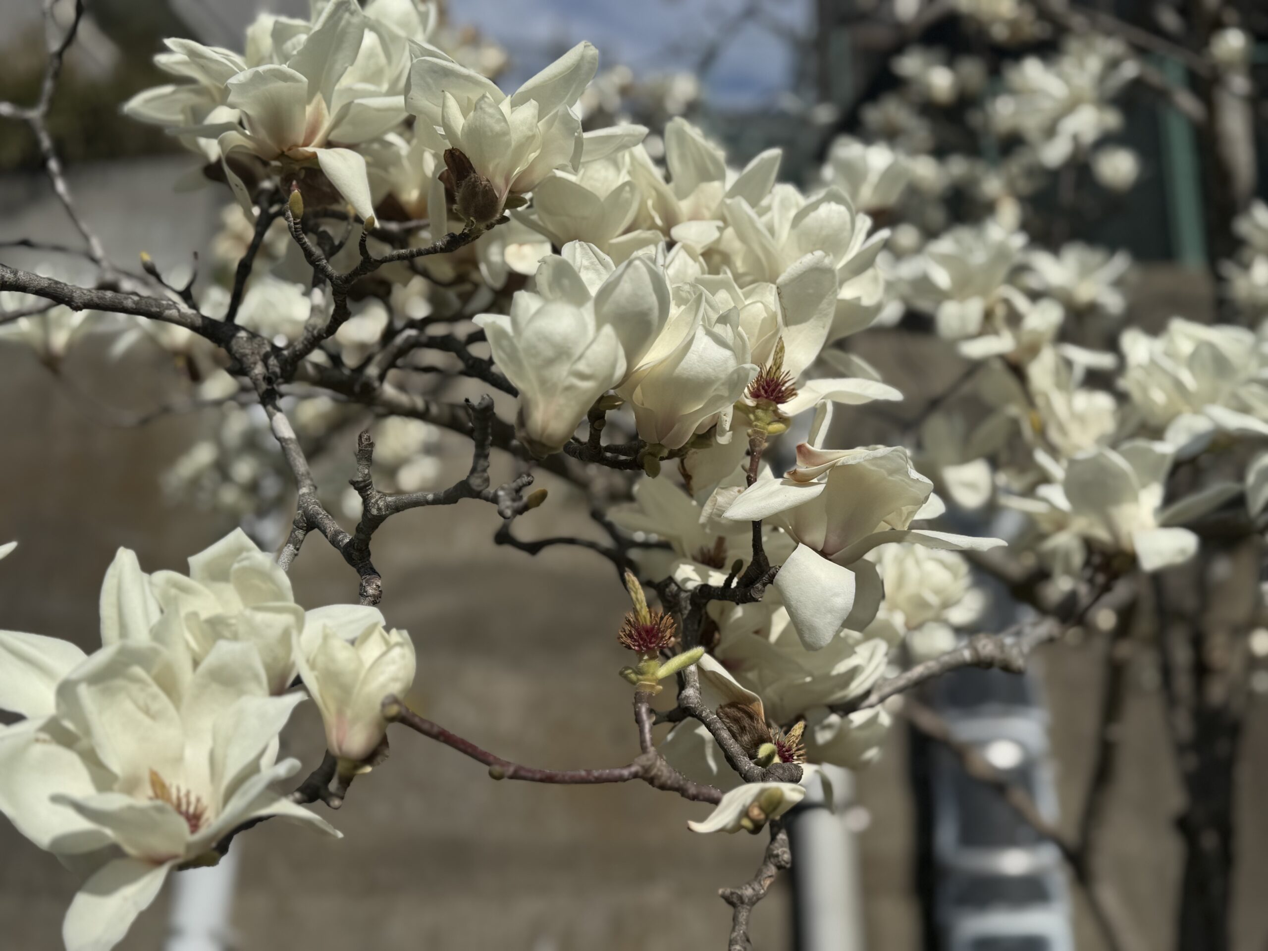 実家の隣には公園があって、実家では密かに庭と呼んでいる。その庭に毎年キレイな木蓮が咲く。