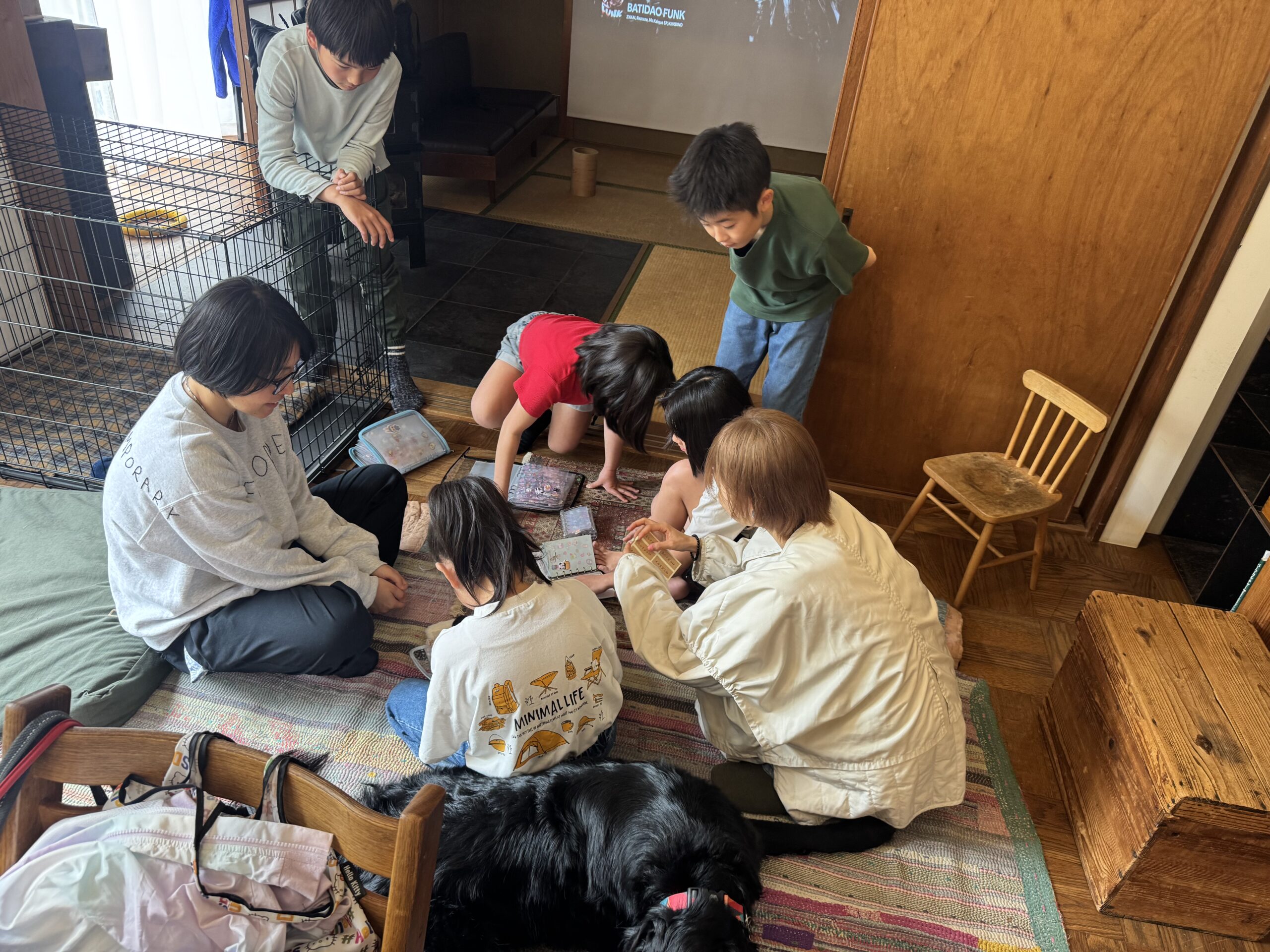 家に入った瞬間から、子どもたちが人見知りする間も与えないサイコワールドに脱帽www。すんなり子どもたちも入り込んで、念願のそらにも会えて(大きい犬にびっくりしないようにかなり事前準備していました)たくさんなでなでさせてもらって親子共々、心がほくほく。帰りがてらも帰ってからもトコっ子ズはそらがかわいかったーかわいかったーでもちきりですわ。
