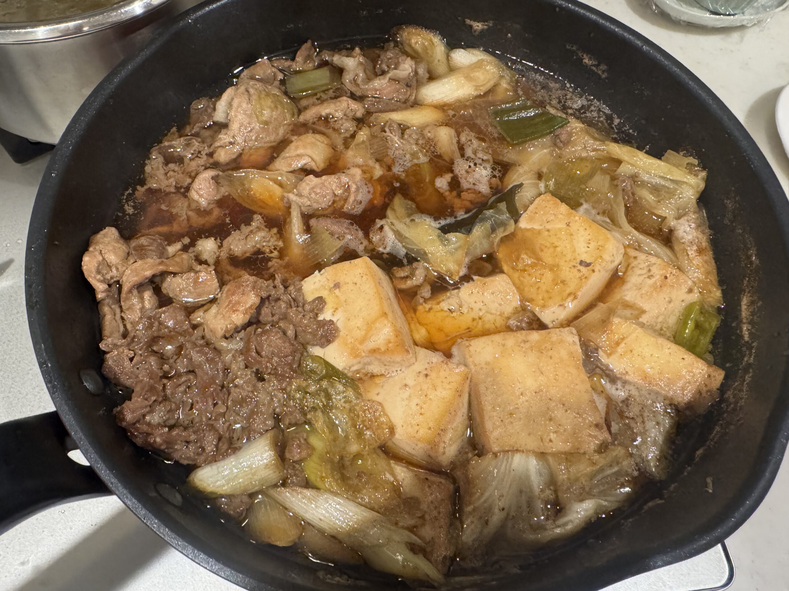 土曜の夜に夫が、肉どうふを作ってくれた。