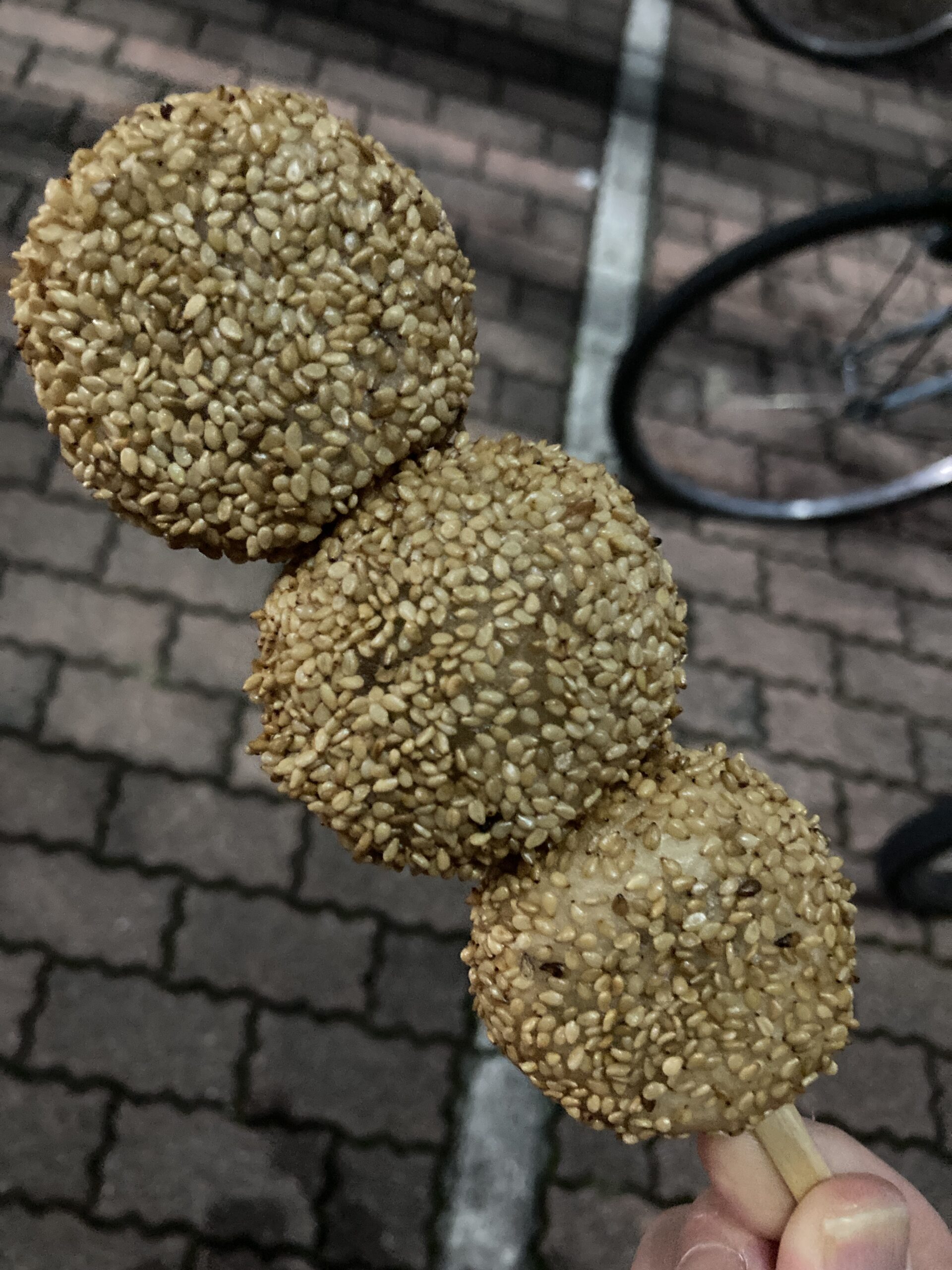 しかし、えっ、こんな味だった?!と期待外れだったため、夜ごはんを作るエネルギー補給のために3分で食べたスーパーのごま団子。