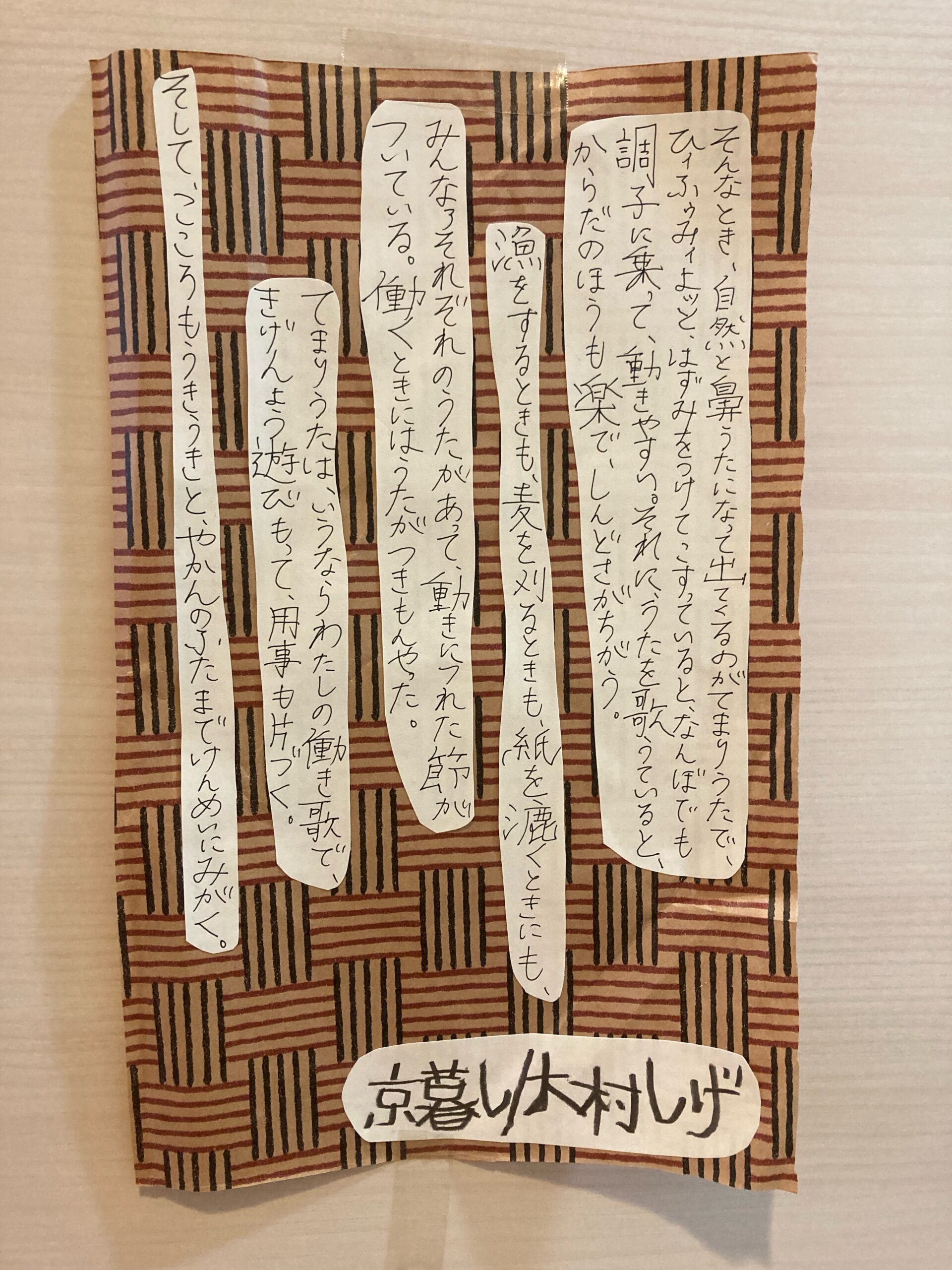 そう、ほしばさんが言っていた生活のリズムで大村しげの言葉を思い出した。おなじみトイレに貼っていたけれどはがしてしまったので戒めをこめて。