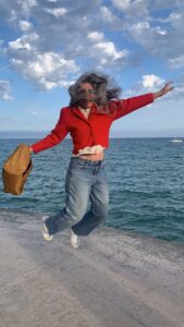 Yo saltando en la esquina del paseo marítimo de Sitges. Cuando rompen las olas, es muy bonito.