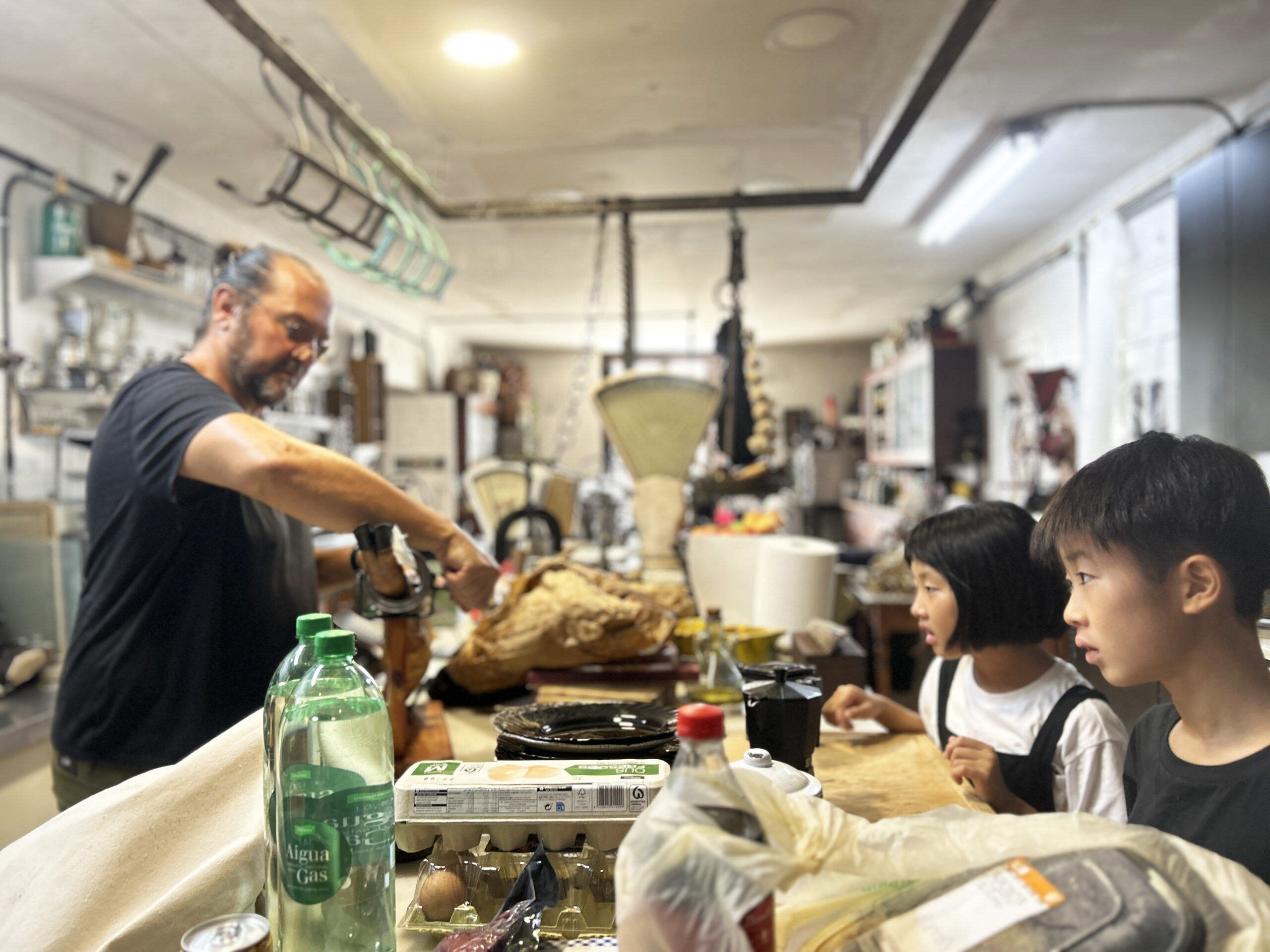 さっそく、切り出してもらう。ああ、なんて贅沢。食い入るように見学する2人。めっちゃ素敵な友人のお宅。まるでミュージアム。