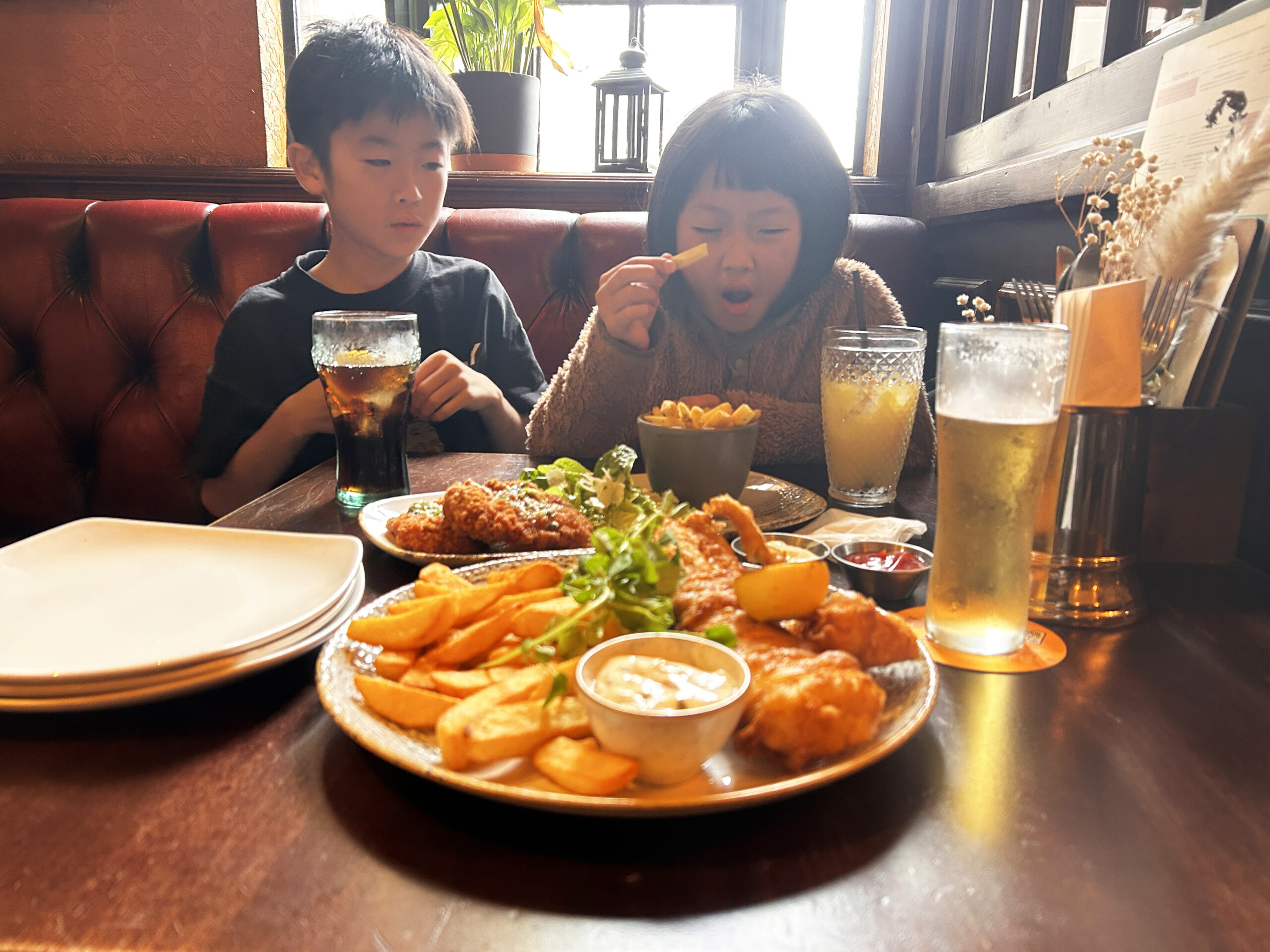 お昼は「一度くらい、フィッシュ&チップス食べておこうよ」というムスコが言うもんで、じゃあ、まあ……とそのあたりのレストランに。最初のレストランでは「今だと、30分くらいかかっちゃうんだ」と、他のお店を紹介してもらう。番地、聞き取れた自分をナデナデ。でも、19と90とか、桁数が大きくなると結構すぐもう無理です。