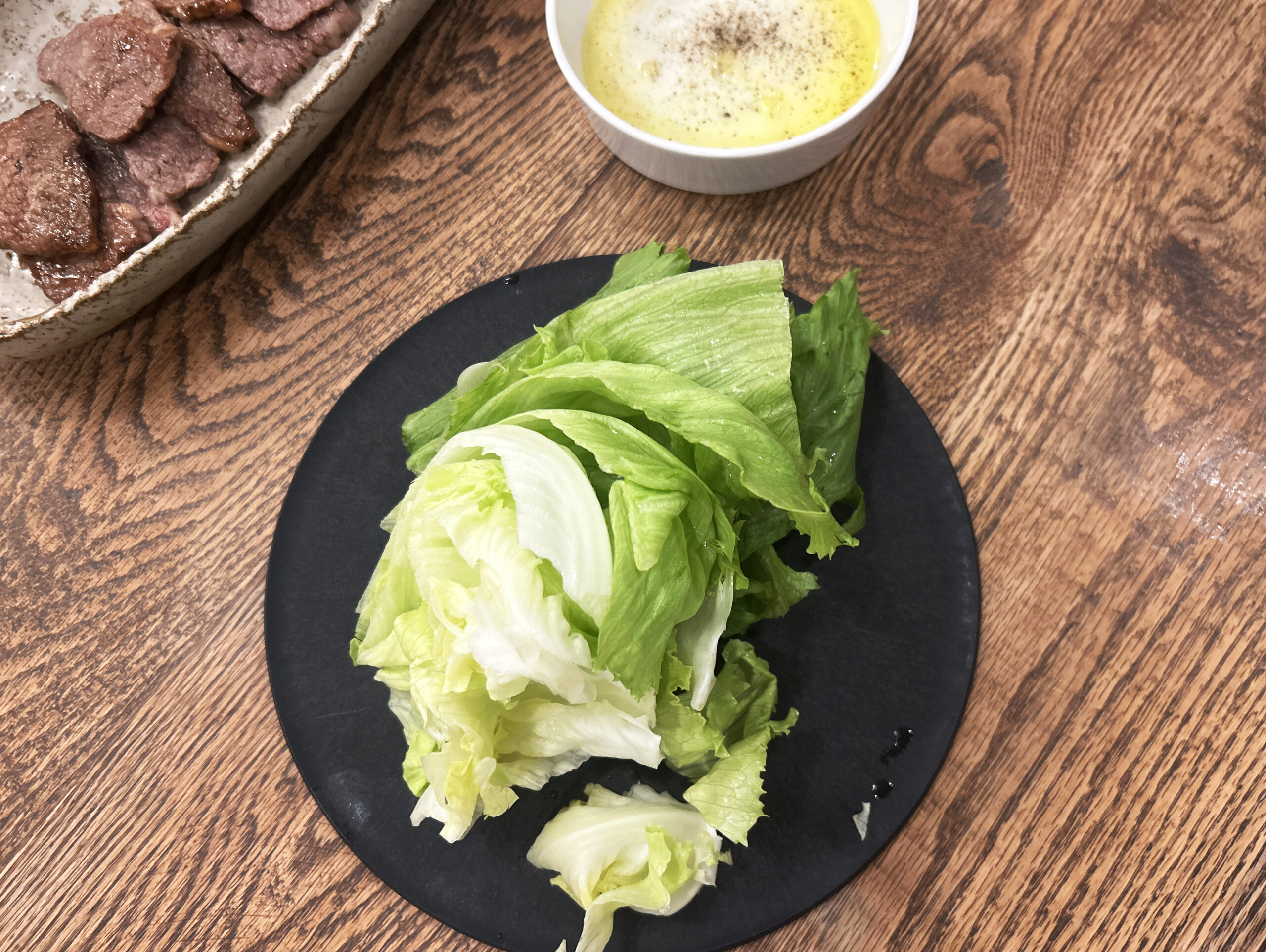 オットが作ってくれるごはんは野菜がない、と書いた翌日。野菜がでてきた!このほかにポテトサラダ的なものが食卓にあがっていた……じゃがいもとベーコンだからサラダではないか?