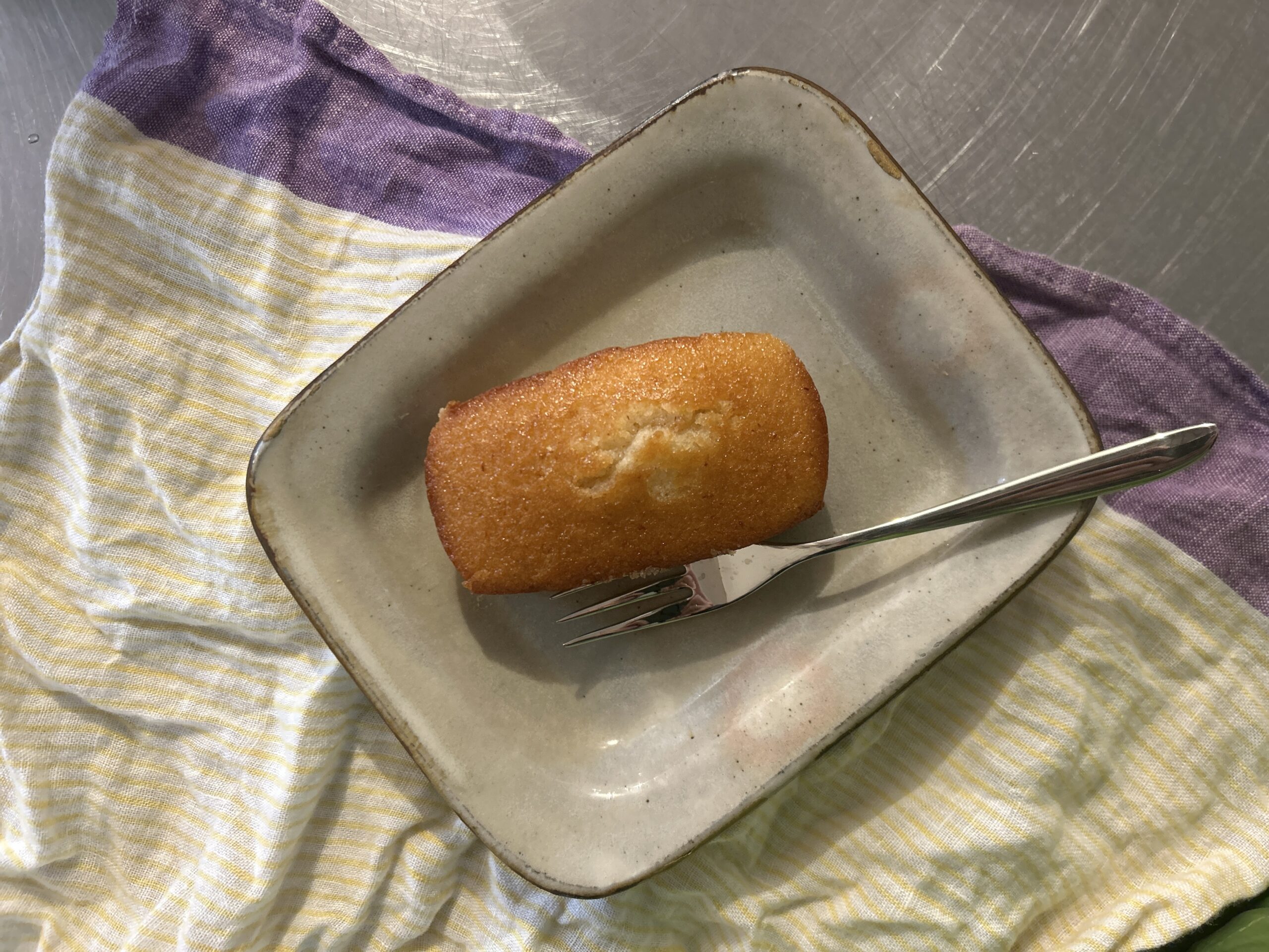 セブンの入口で、試食のフィナンシェをいただく。なんでも今日から「お店で焼いたできたてベーカリー」がスタートしたとのこと。まんまとひとつ買って帰る。