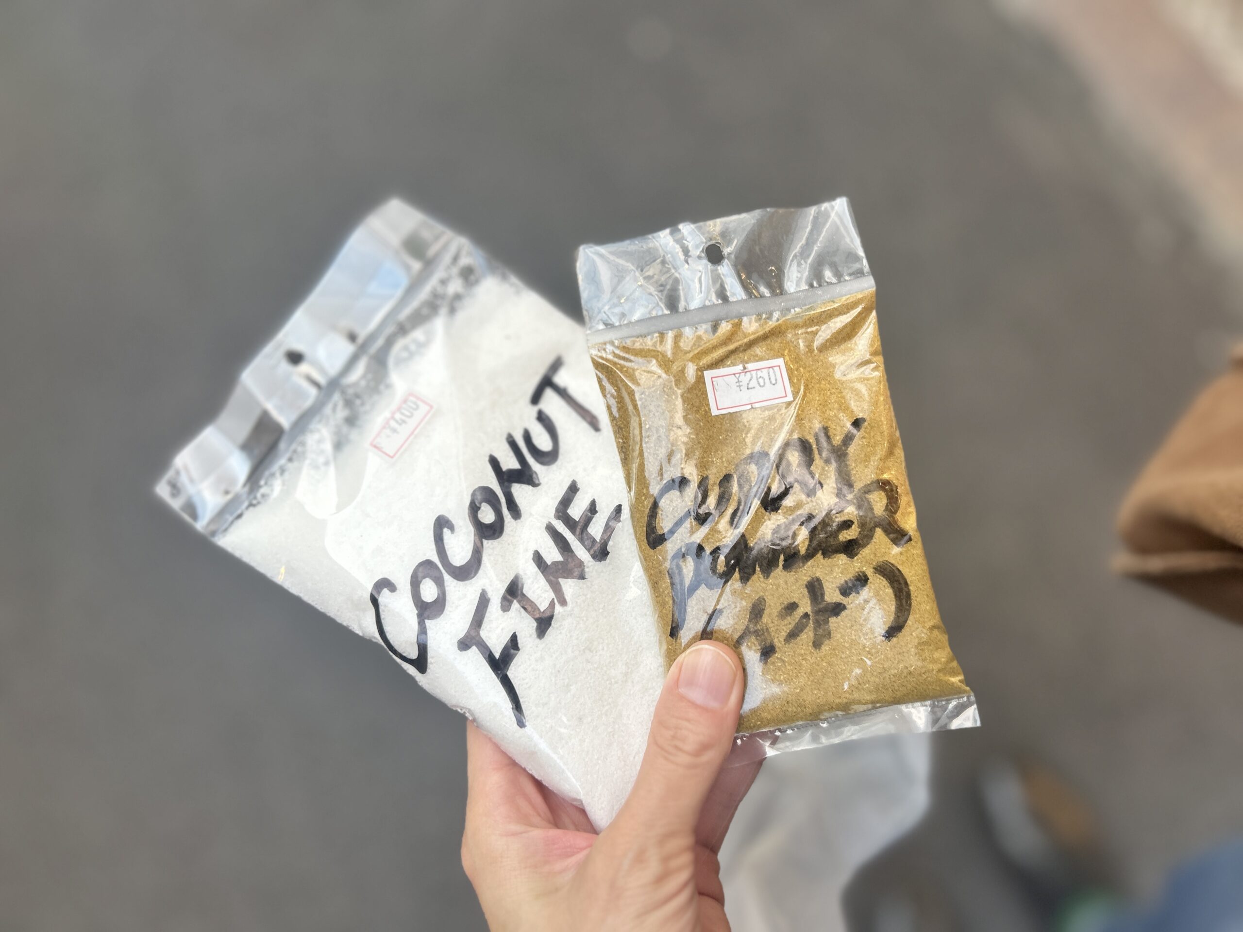ビリヤニ教室で教えてもらった副菜を作ってみたくて、ココナッツファインを探しに。大船のスパイス屋さんへ。ココナッツオリルとかは知っていたけど、ファインはお初です。カレーパウダーも買ってみた。インドとイギリスの二種類あったけど、インドの方がマイルドとのこと。