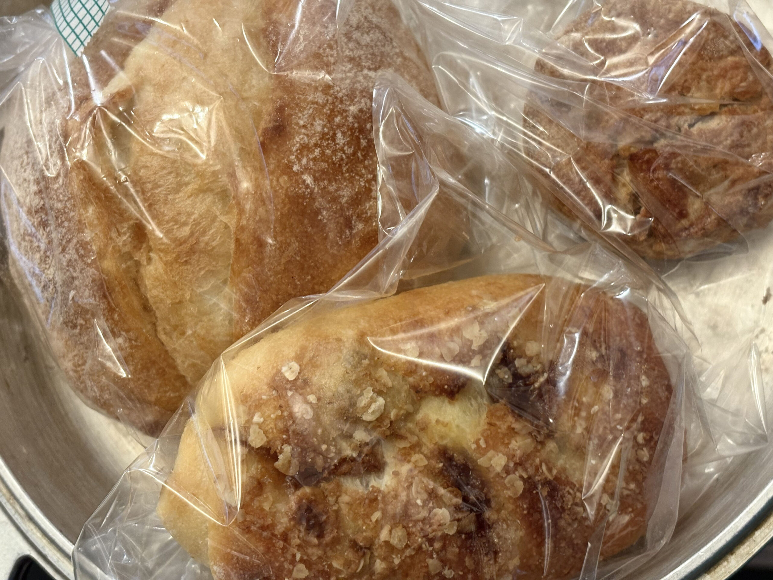 オットの好きなフォッカチャと、ムスコの好きなスコーンと、私の好きなホワイトチョコの入ったパン。