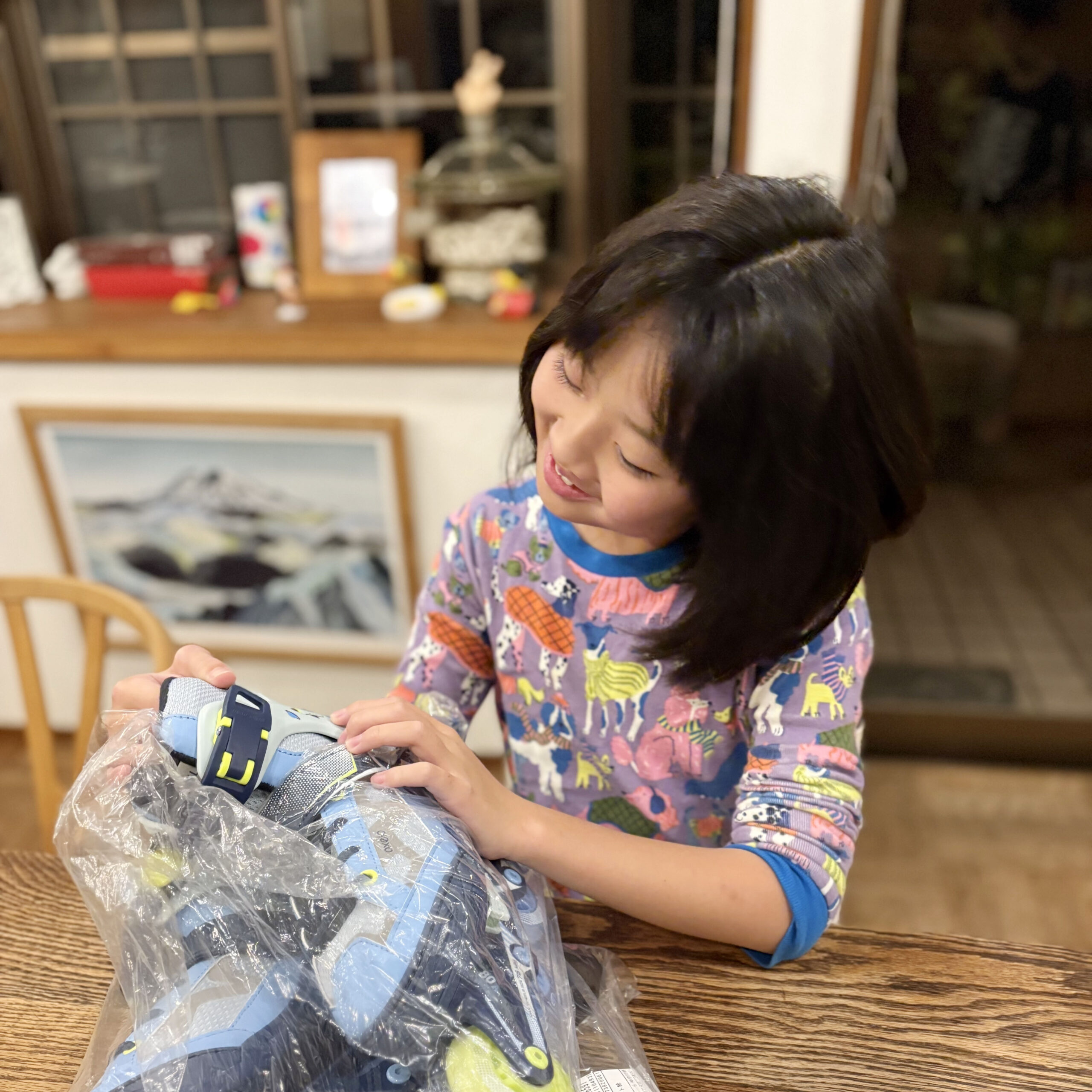 届いてました、プレゼント。希望の色ではなかったみたいだけど、よかったね。当初はVRゴーグル希望で、それはさすがトゥーマッチだし、重くて体にも良くなさそうで、どうなることか気を揉んだけれど一件落着。うまく滑れないながらも、朝から楽しそうに遊んでいる。