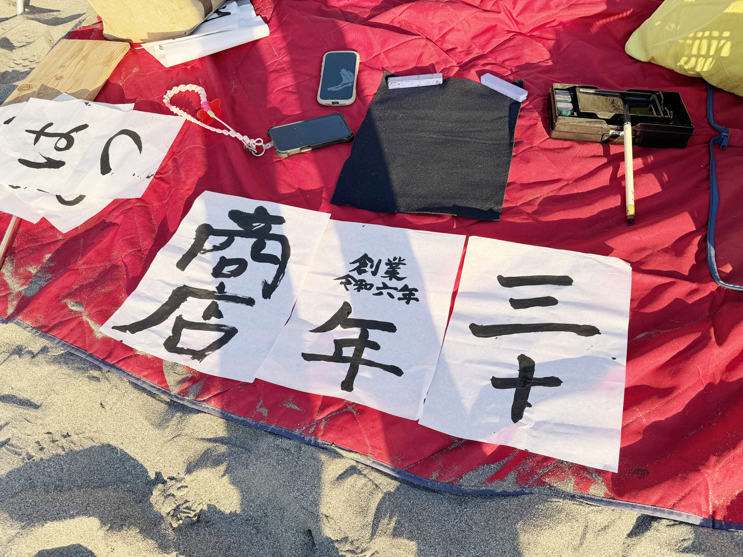 海辺で焚き火!だけでも十分に楽しいんだけど、そこに書き初めがプラスされることで、さらにわくわく度が増して、年末年始の楽しみにしていたこの会。サラっと準備して開催くださる、海秋紗さんご夫婦、いつもホントにありがとう。来年もお願いしまーす!!