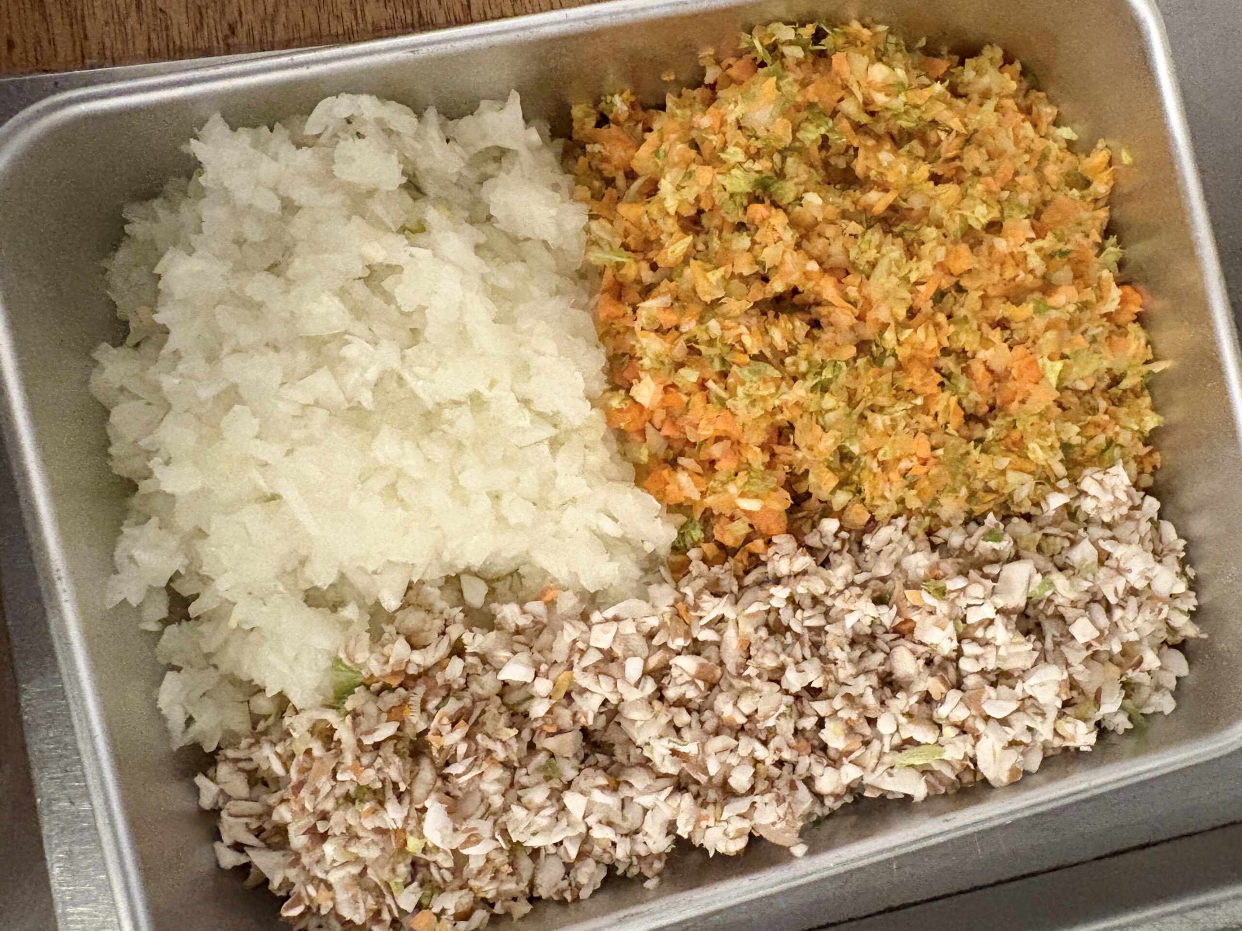 もどって、このあいだ買ったみじん切りチョッパーを使って、ミートソース仕込んだ。チョッパー楽しい。