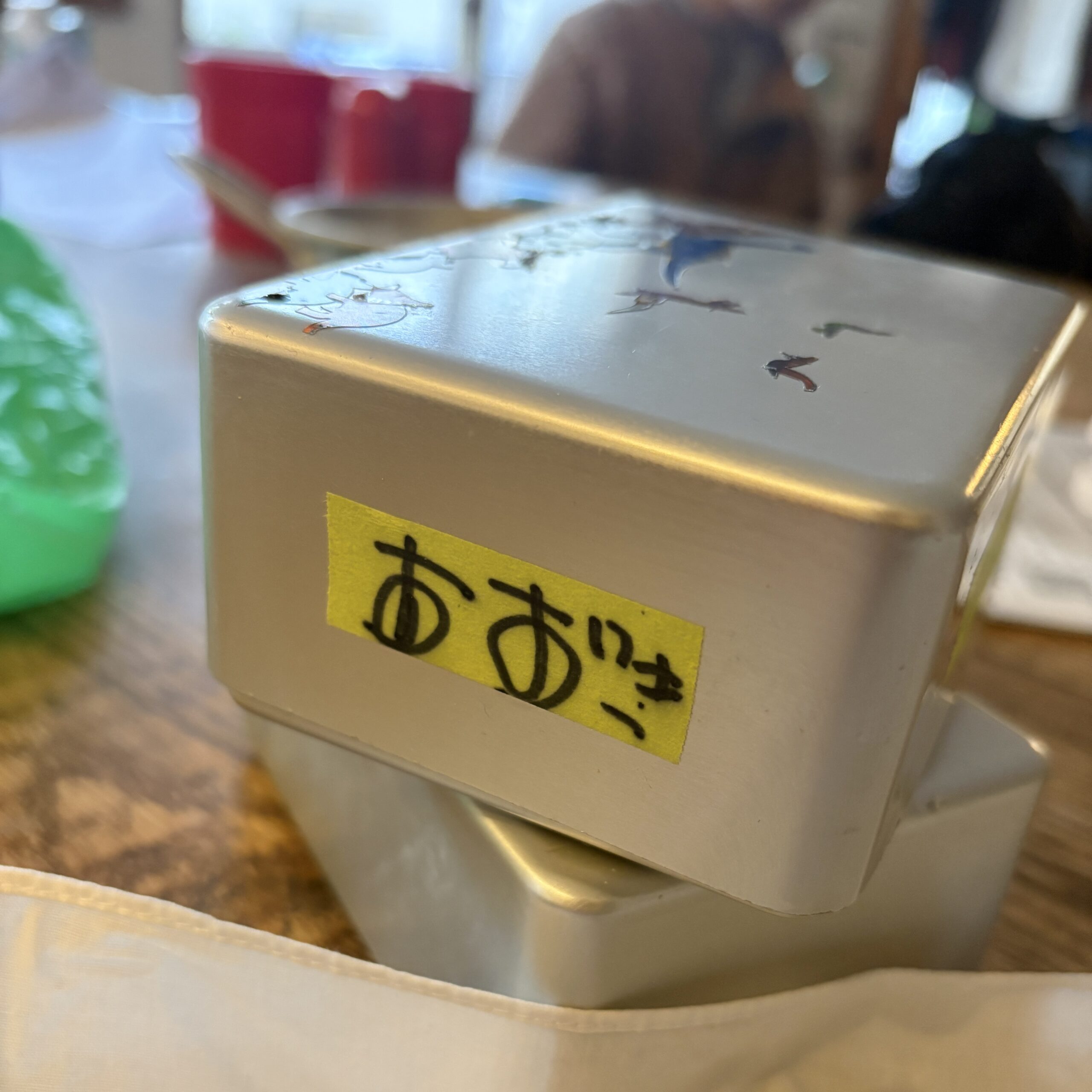 保育園の頃に、好きなようにシールを貼って、マステに自分で名前も書いた。その頃は、年齢を経るごとにシールを貼り替えたりしていくかと思いきや、そのまま。もう、もったいなくて剥がせないなー。